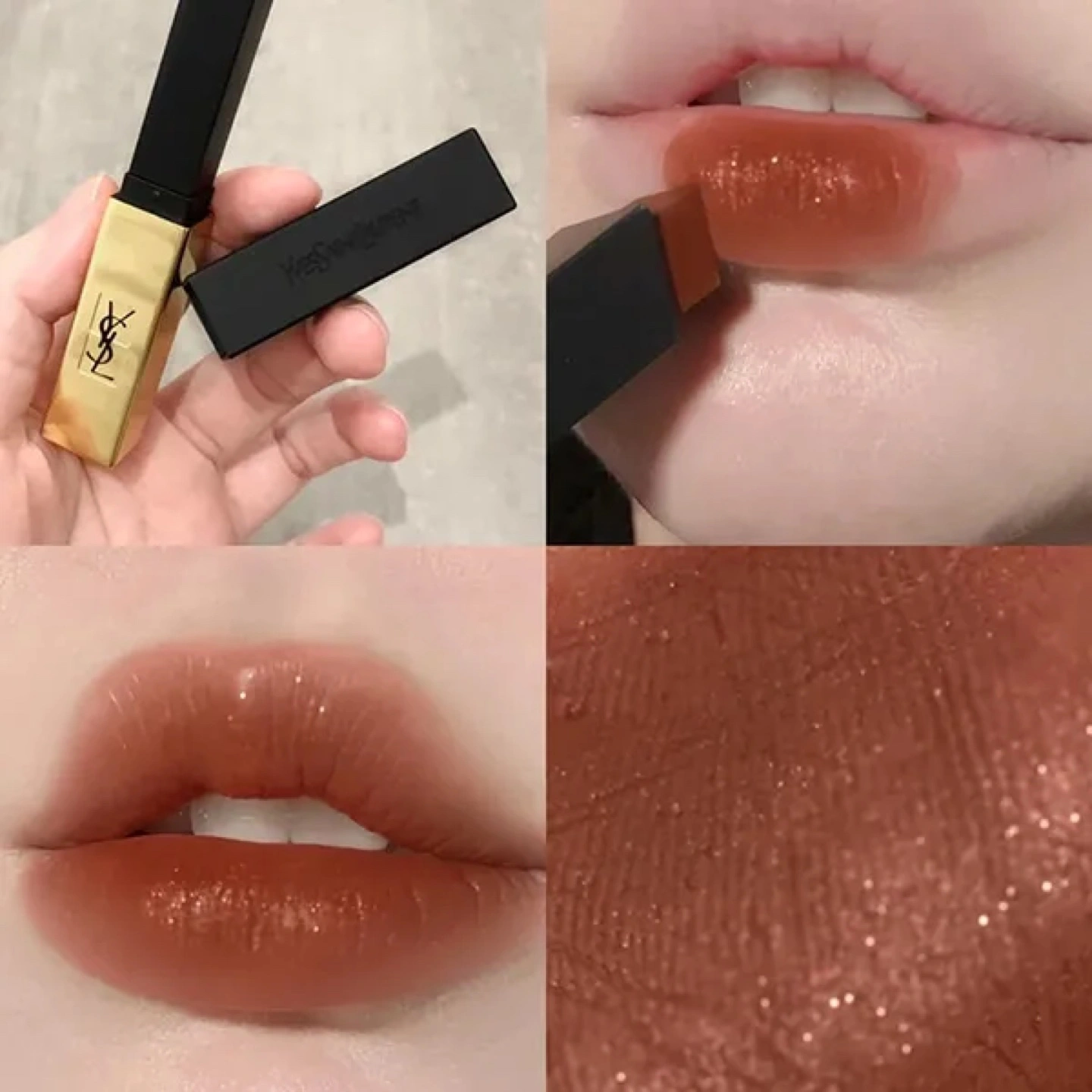 YSL lipstick. Beautiful matte brown shade. Stylish slim design. Perfect for everyday wear or special occasions.