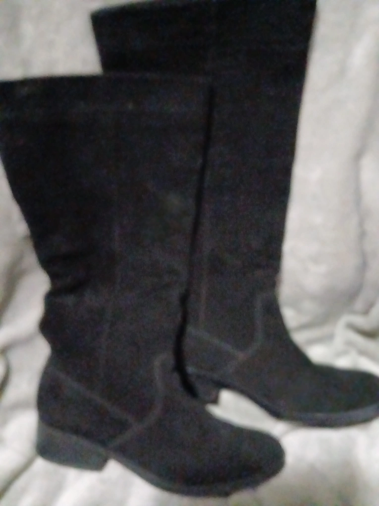 711Black suede knee high boots with a low block heel. Brand new. Never been worn. Available for pickup at 2401 Queen Street East. For a quicker response 437-577-2614. Can be shipped/delivered for an additional fee.