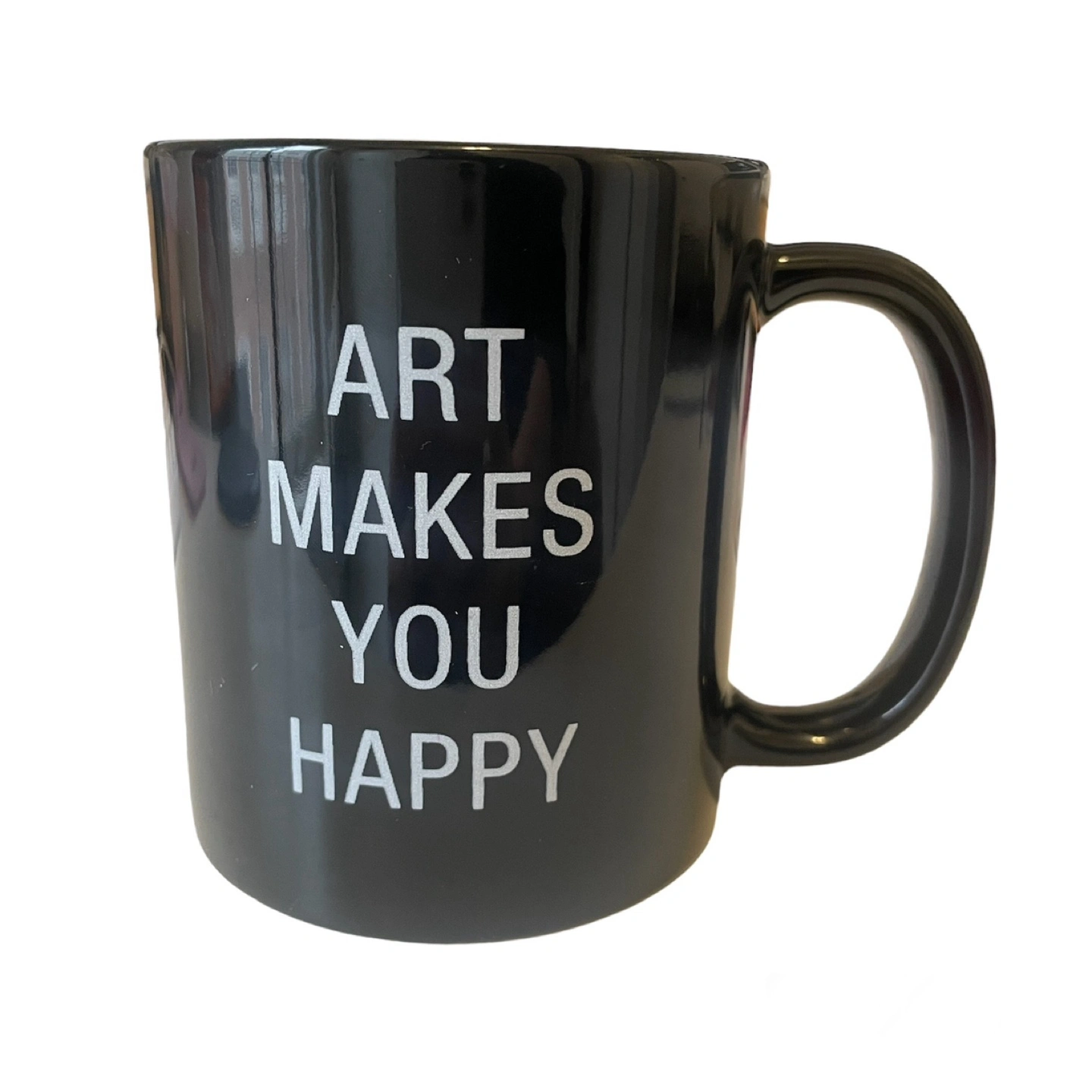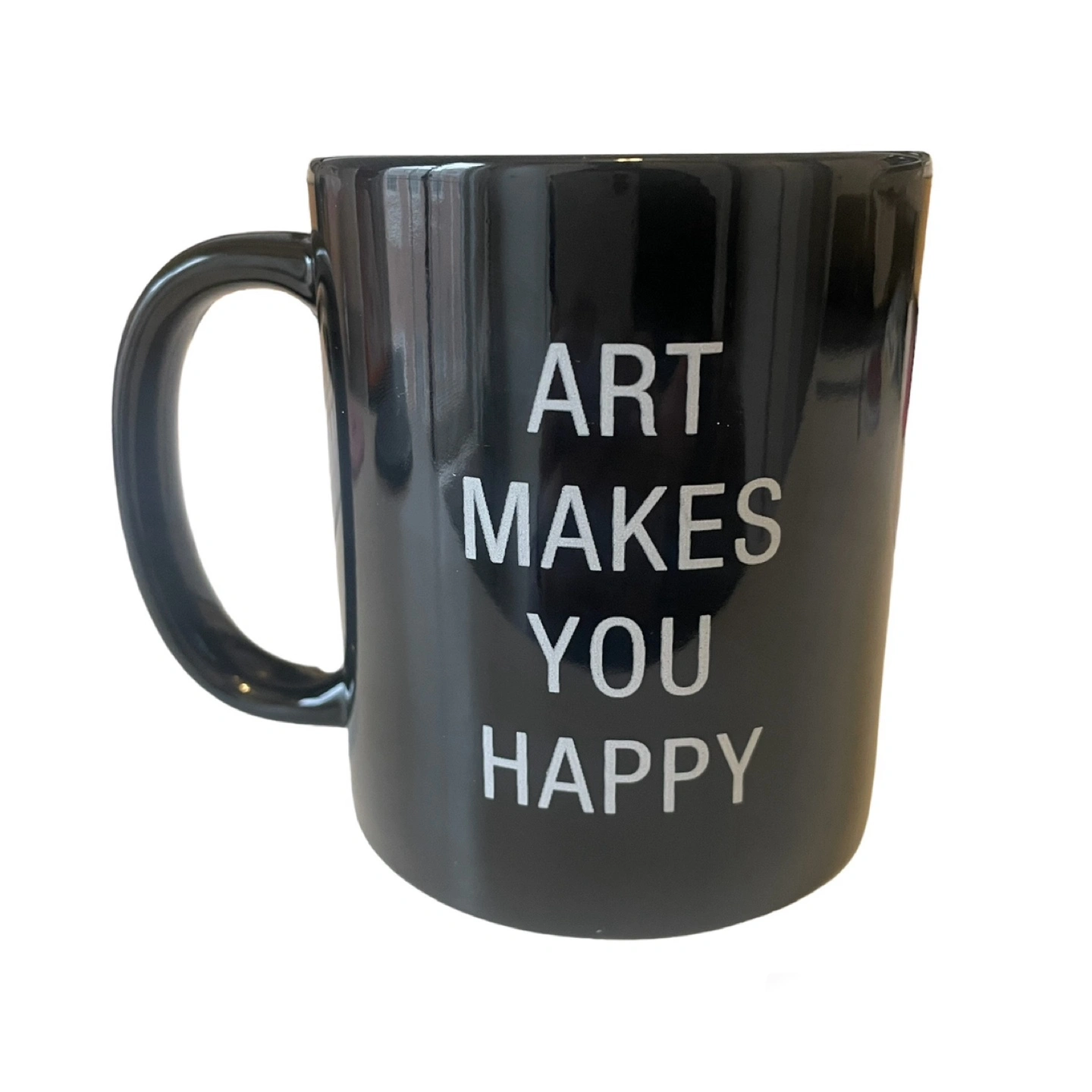 From the Art Gallery of Ontario. Says "ART MAKES YOU HAPPY" on both sides in white text.