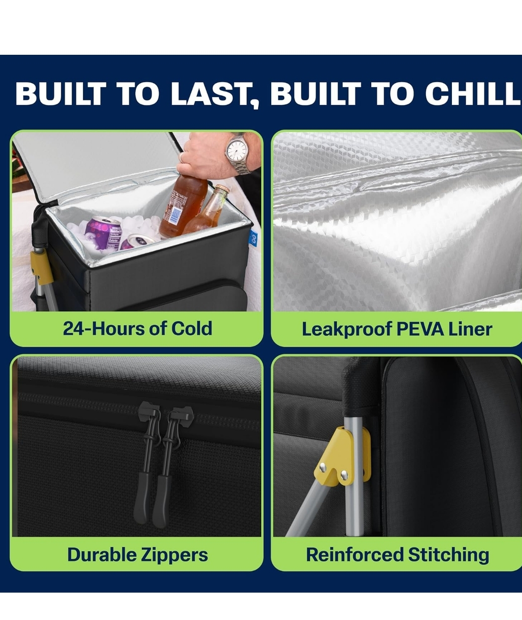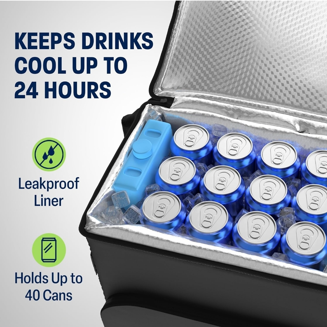 This backpack cooler is perfect for sunny escapes and outdoor fun! It keeps drinks cool for up to 24 hours and holds up to 40 cans. The dimensions are 13.4" x 16.14" x 15.15". It also features a leakproof liner