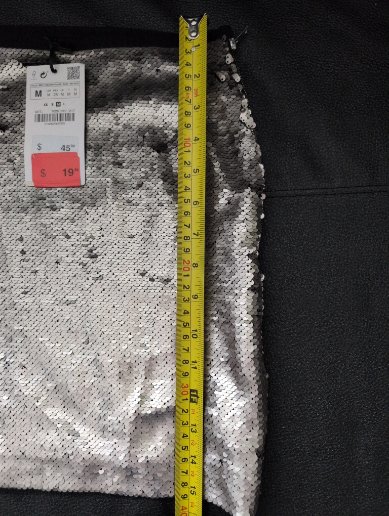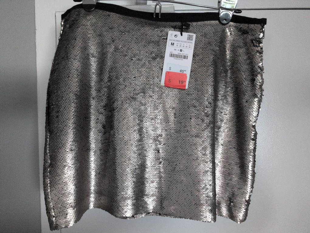 Zara Basic Silver Sequin Mini Skirt - Size M