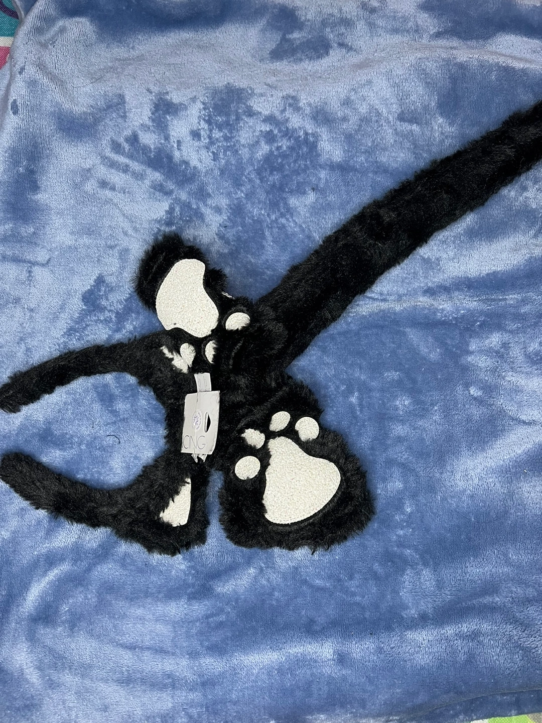 Adorable black cat ear headband,tail & gloves. Features soft fur and paw print details. Perfect for costume parties