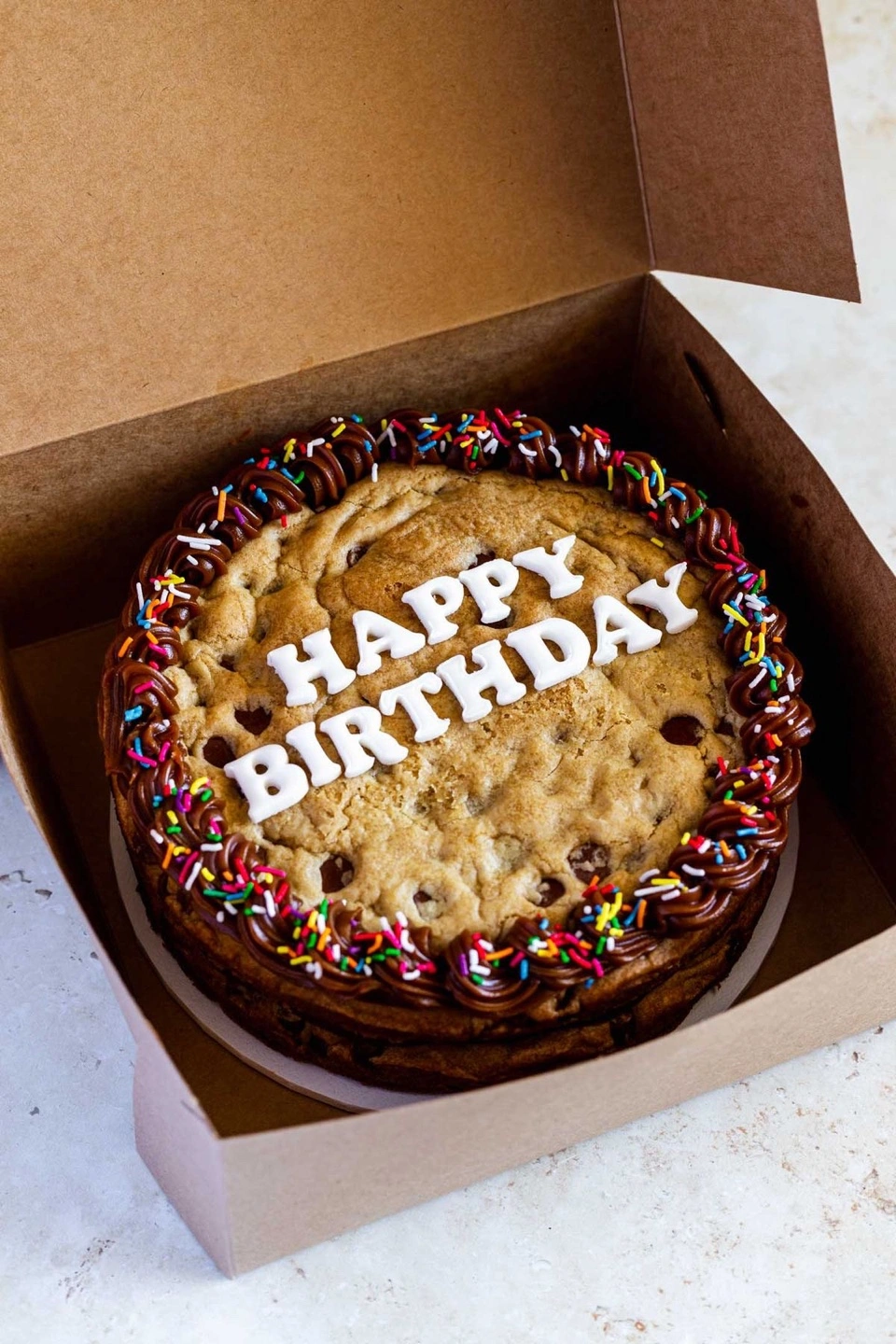 Buy & SellBirthday Cookie CakeBirthday Cookie Cake$35Two layer chocolate chip cookie cake with frosting, sprinkles and happy birthday writing. Feeds 8-12 people. MADE FRESHWHERE TO MEETCheck LocationView MapSELLERBakedbyCLeitrim292 reviews0 chats·1 favorites·55 views