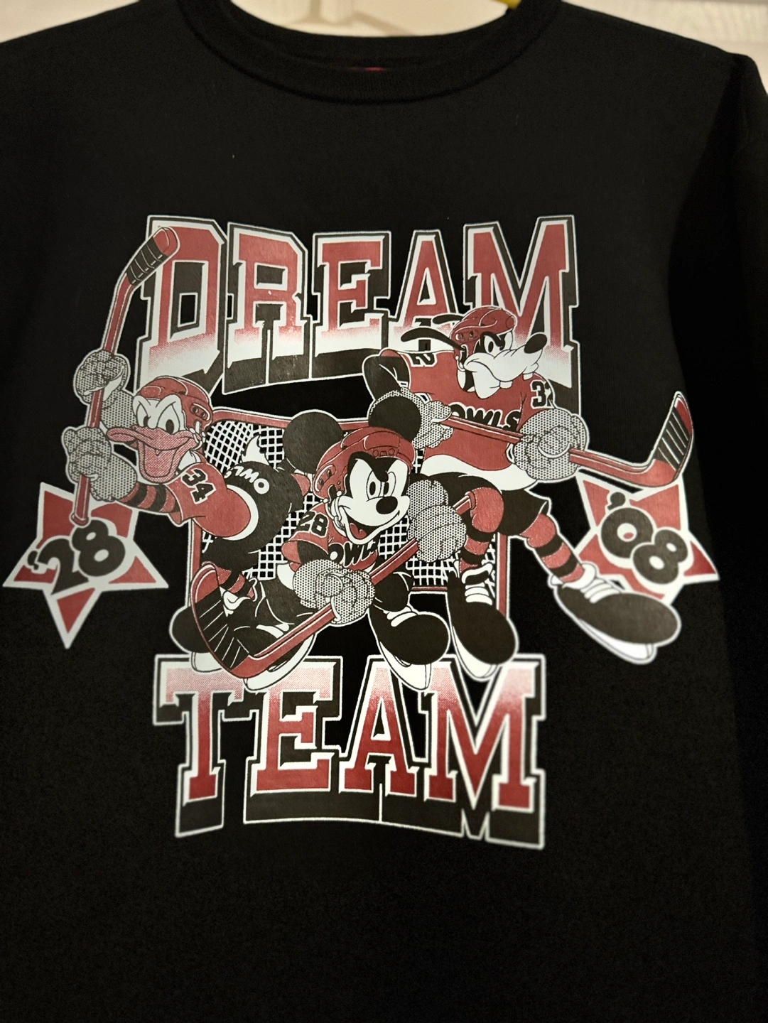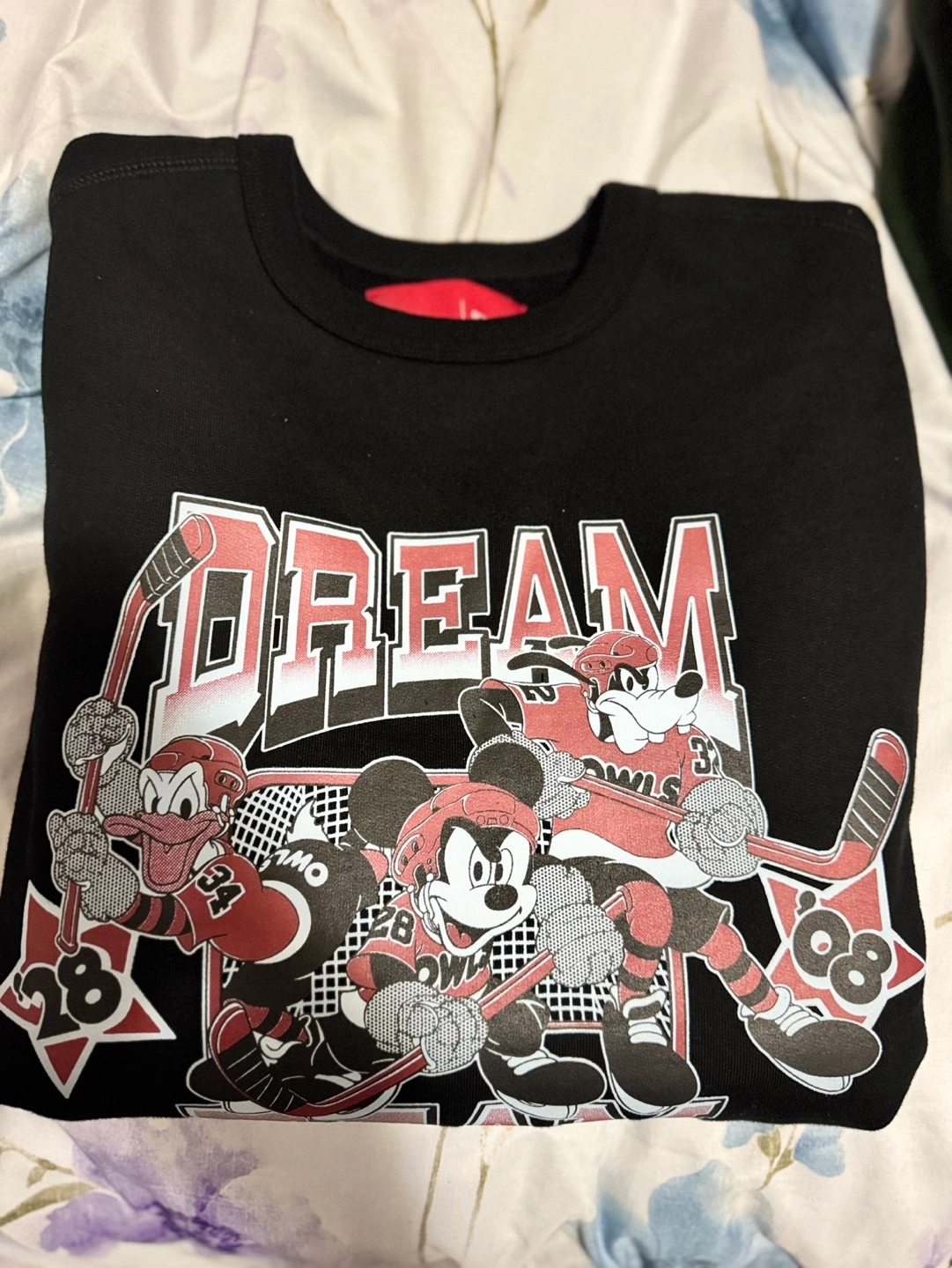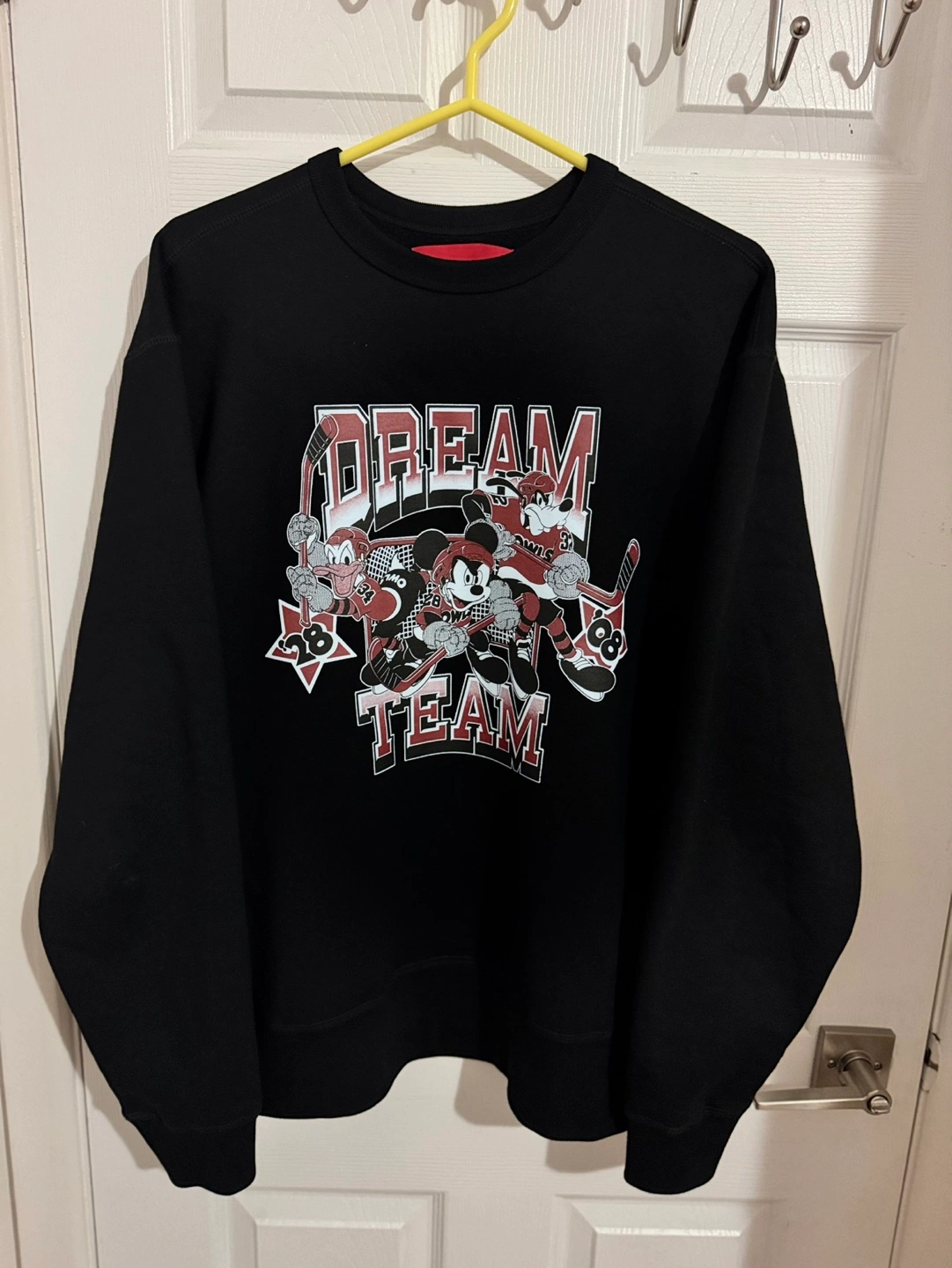 360Black crewneck sweatshirt. Features a large graphic of Mickey Mouse, Donald Duck, and Goofy playing hockey. Back features OVO branding and text. Made in Canada. Size Large. OVO x Disney Dream Team Crewneck Black Condition: in excellent to new condition (no issue) used once only. Price: 125 cad cash or best offer Location: 807 Brimley Road Scarborough (pick up location) Meet up: Line 1 or Line 2 subway or downtown Please see my other listing. Happy Shopping.