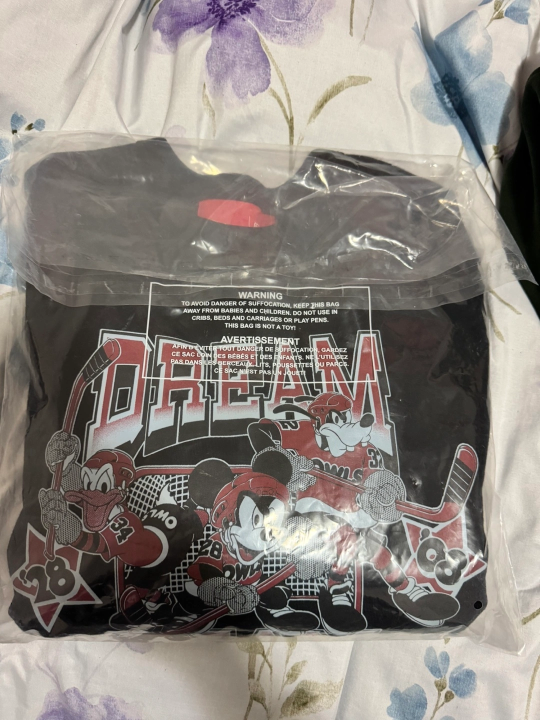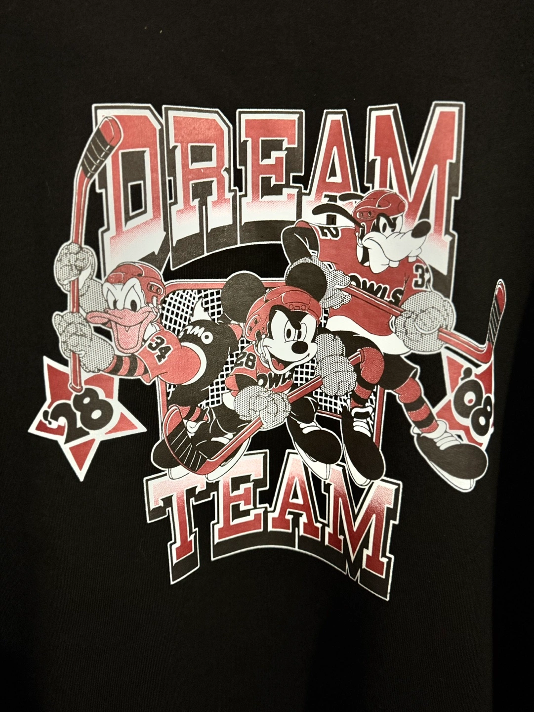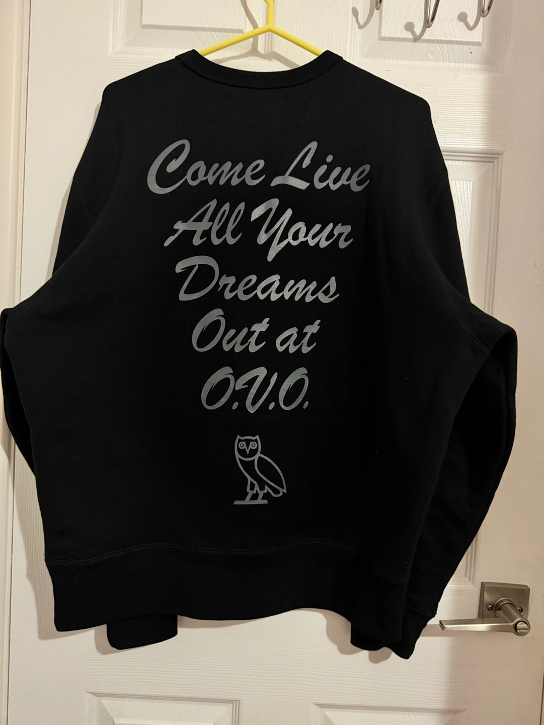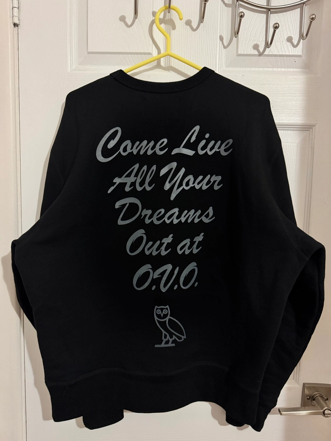 360Black crewneck sweatshirt. Features a large graphic of Mickey Mouse, Donald Duck, and Goofy playing hockey. Back features OVO branding and text. Made in Canada. Size Large. OVO x Disney Dream Team Crewneck Black Condition: in excellent to new condition (no issue) used once only. Price: 125 cad cash or best offer Location: 807 Brimley Road Scarborough (pick up location) Meet up: Line 1 or Line 2 subway or downtown Please see my other listing. Happy Shopping.