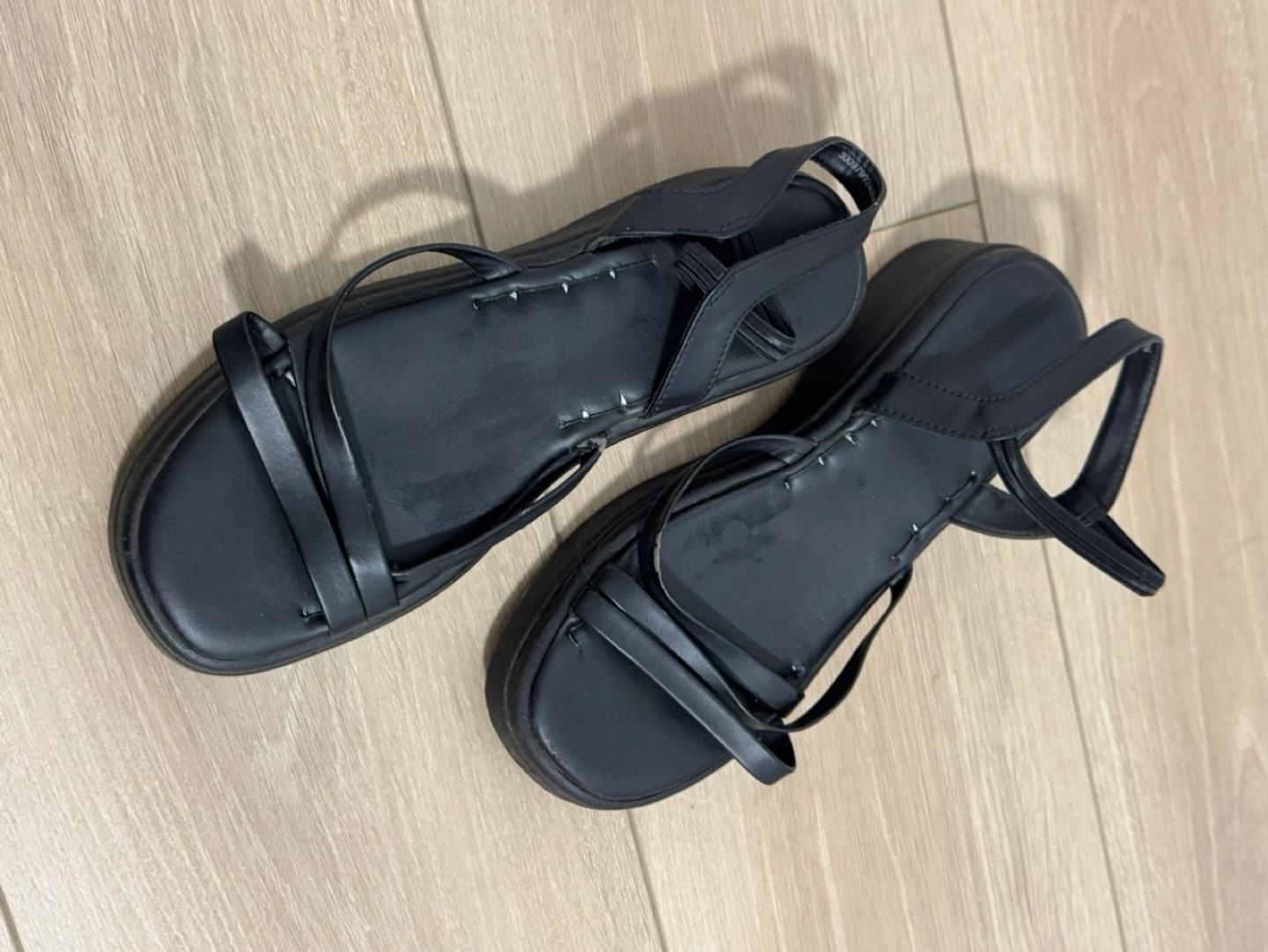 39Pair of black platform sandals. Adjustable ankle strap. Minimalist design. Good for summer.