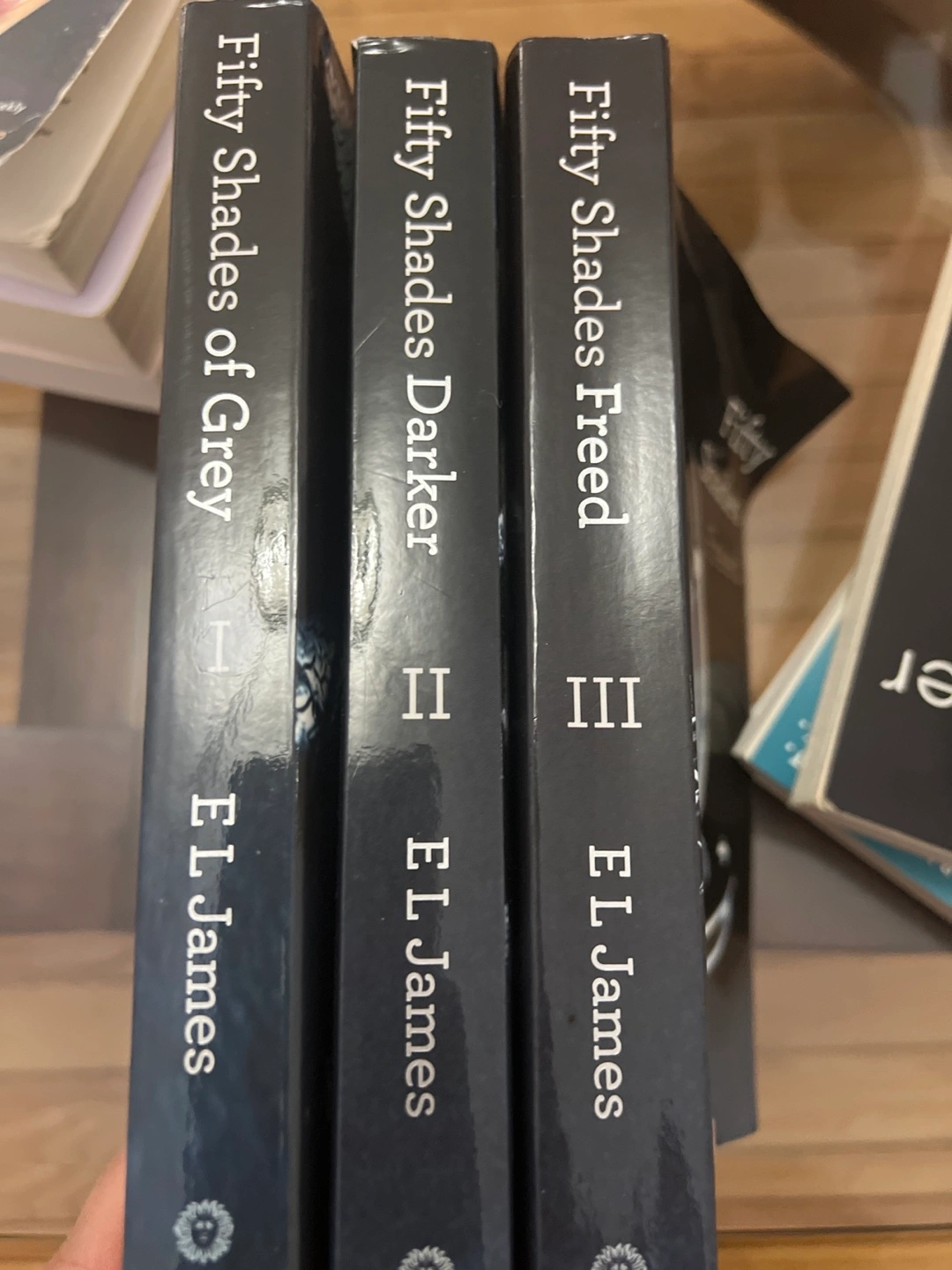 Complete set of three books: Fifty Shades of Grey, Fifty Shades Darker, and Fifty Shades Freed. Paperback novels by author EL James.