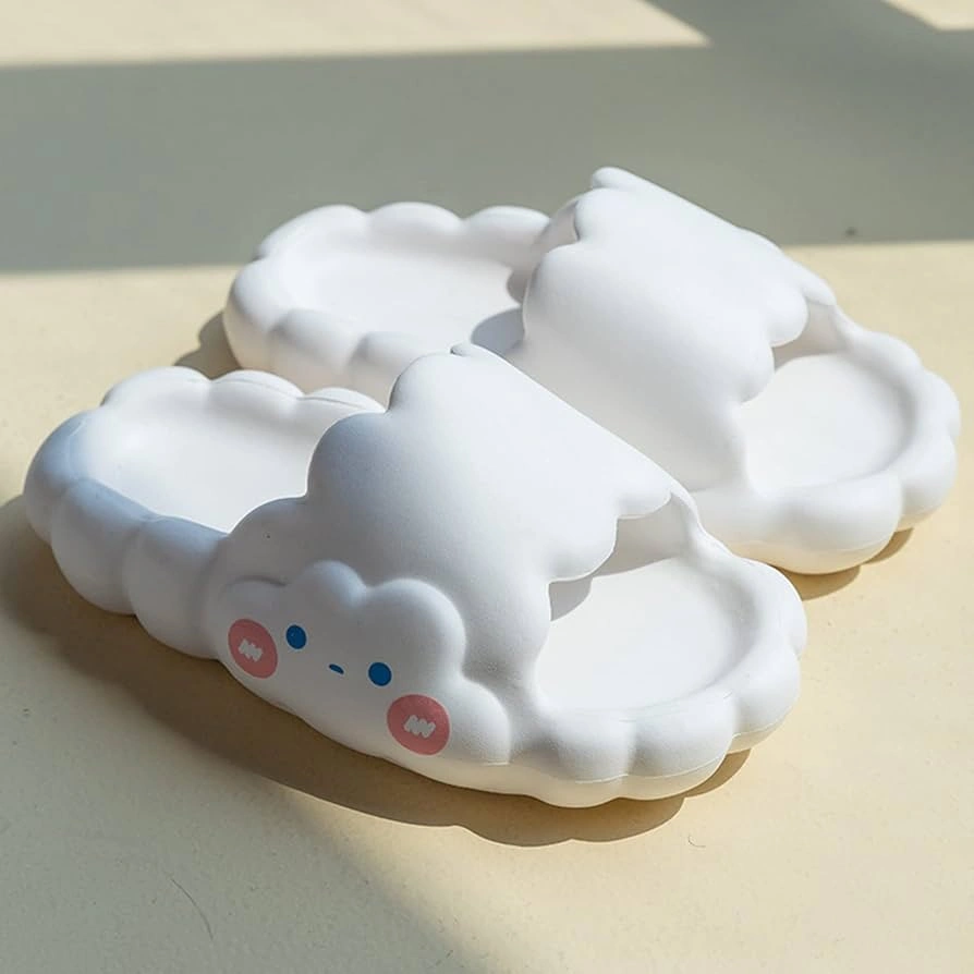 Adorable cloud-shaped slides. Soft, comfortable, and perfect for bath, pool and beach. White colour. Good condition.