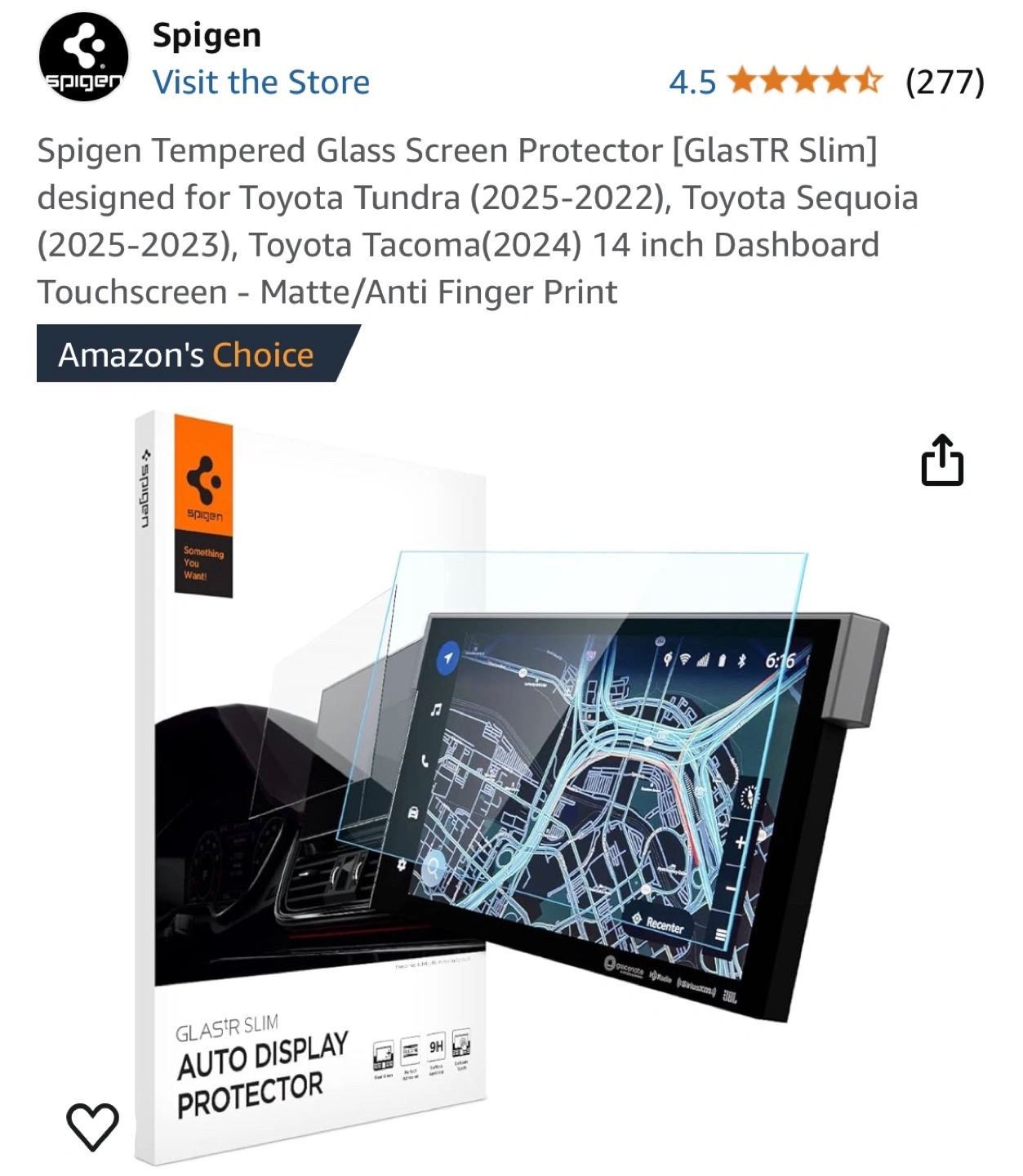 14 inch screen protector. Designed for Toyota Tundra (2025-2022), Toyota Sequoia (2025-2023), Toyota Tacoma (2024). Matte/anti-fingerprint. Durable tempered glass. Seamless fit. Anti-glare coating.