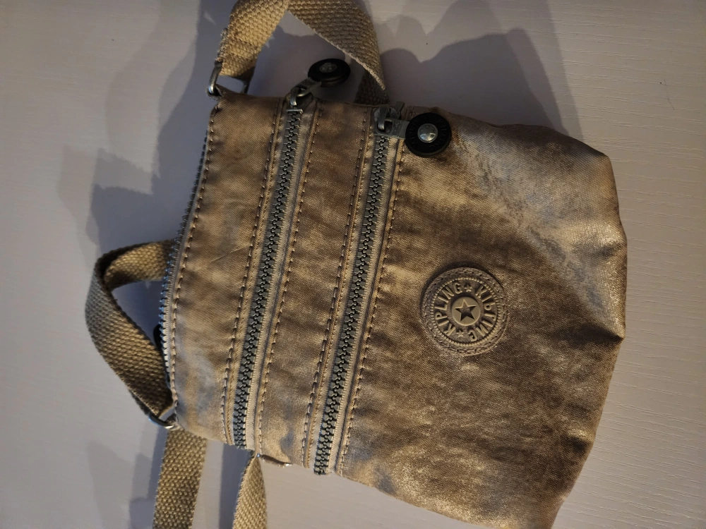 Small crossbody bag. Sand colour. Two zippered compartments. Adjustable strap. Lightweight material.