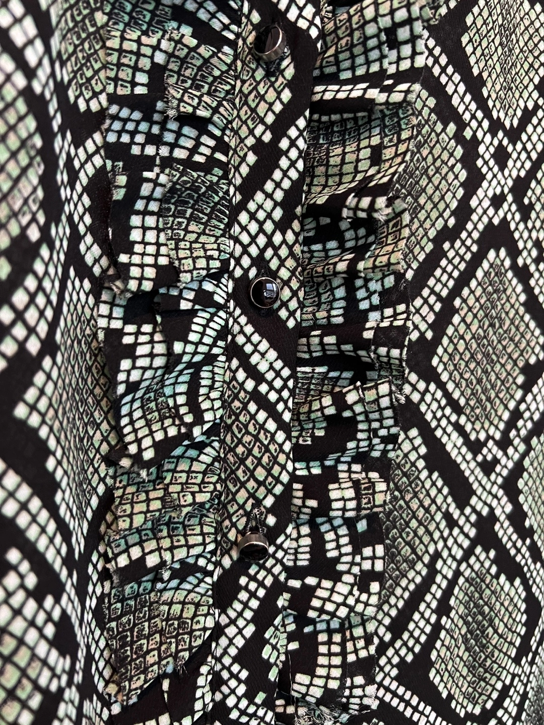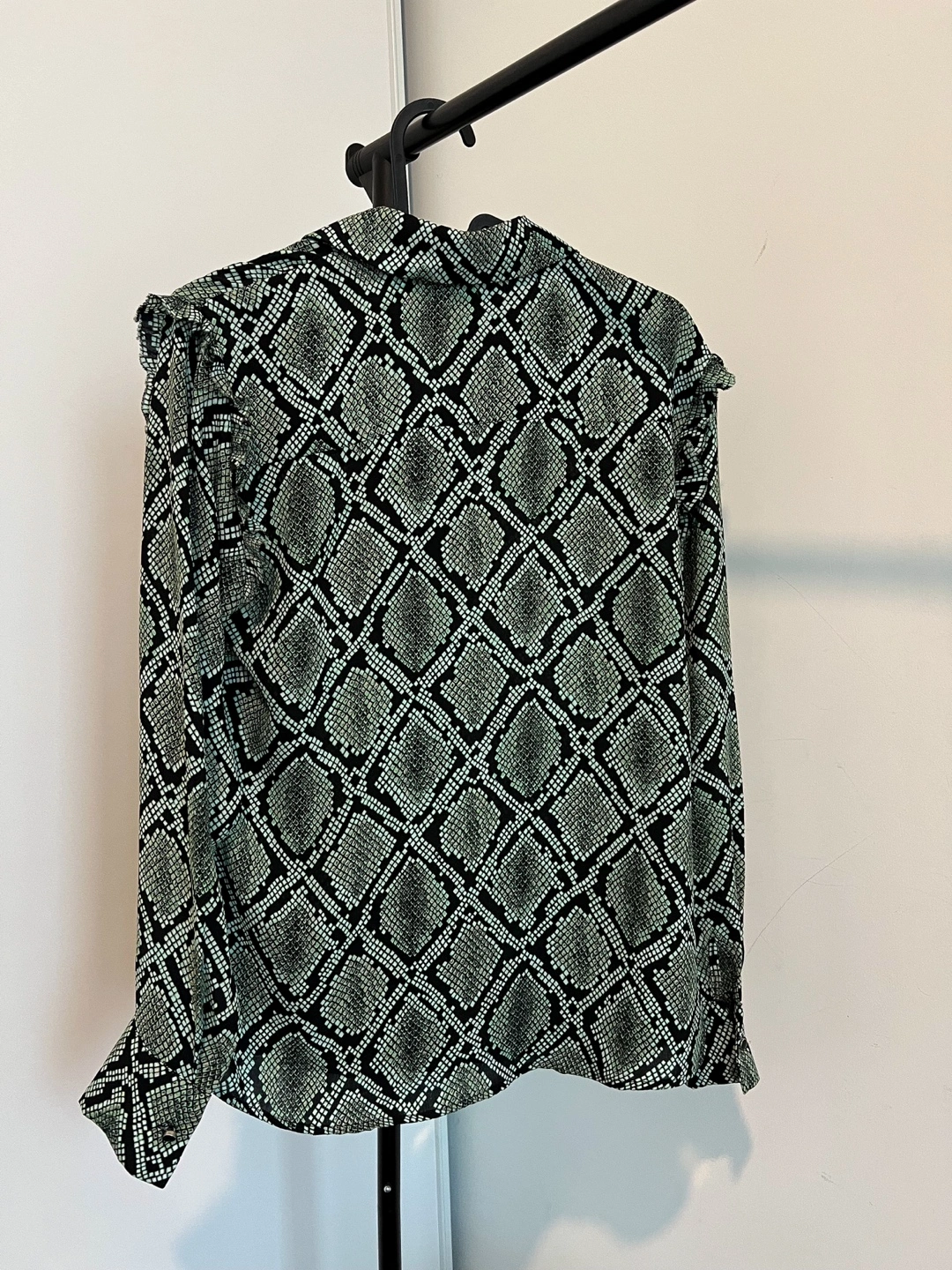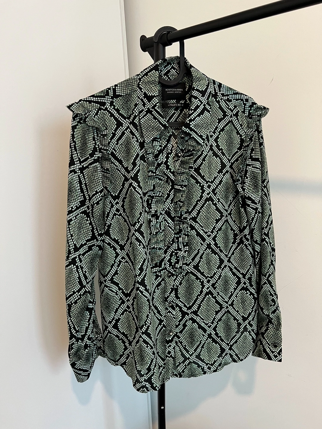 Selling this beautiful ruffled blouse in an amazing green & black colour with a snake/reptile print from an Amsterdam brand Scotch & Soda.