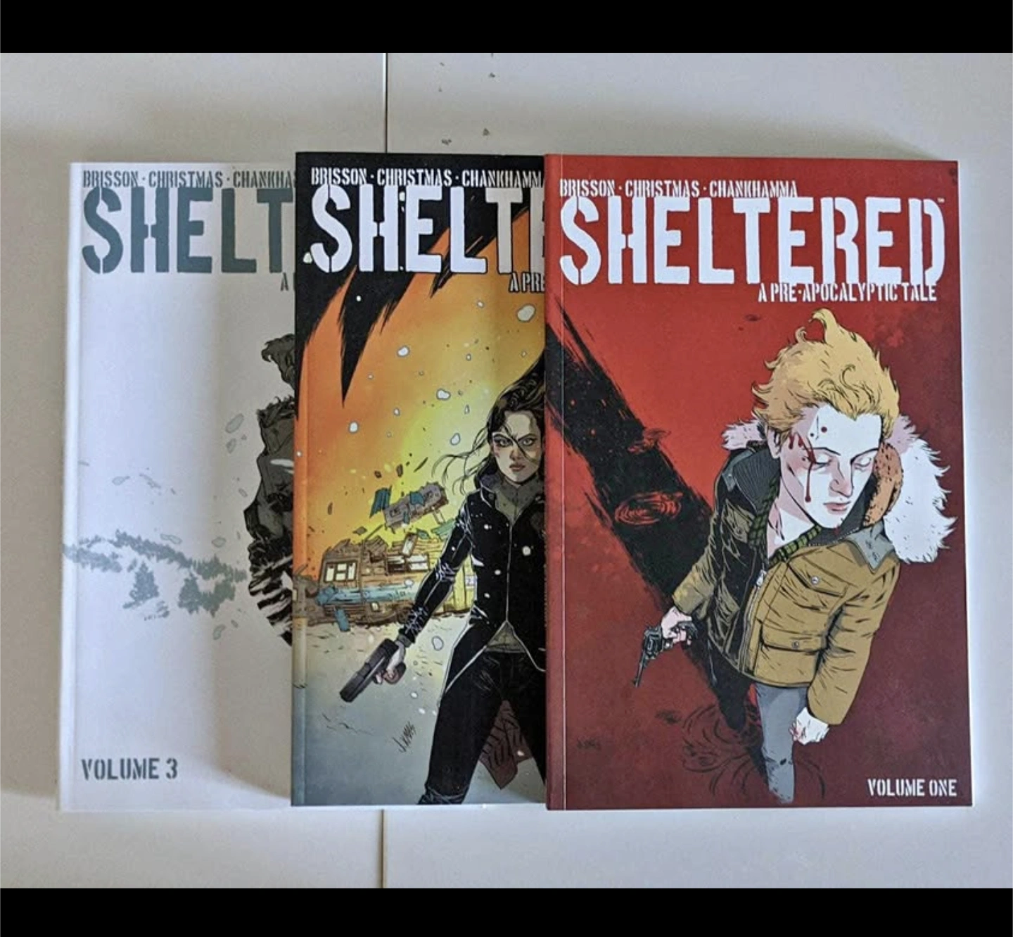 751Sheltered TPB's Vol 1-3 Image comics comic book graphic novels set "A PRE-APOCALYPTIC TALE OF SURVIVAL AT ANY COST.The men and women of Safe Haven have been preparing for any-and-all end of world scenarios for years. However, their bunkers, weapons and training can't save them from the one threat they never could have expected: Their own children."