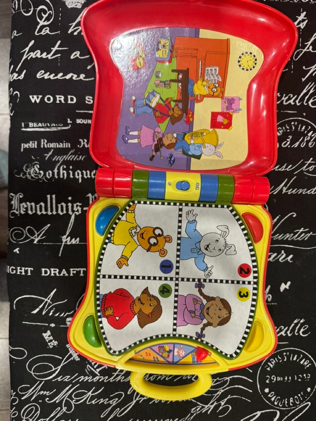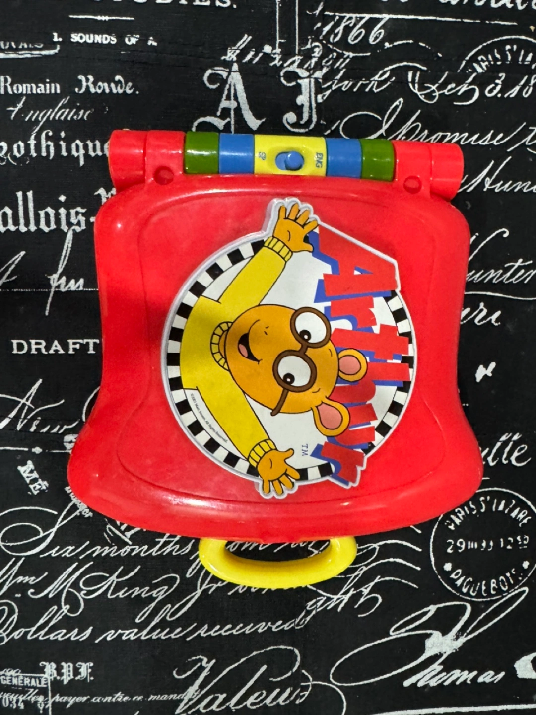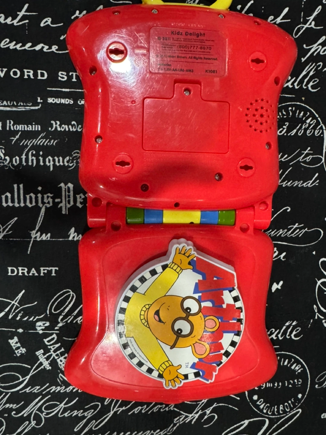 Vintage Arthur's Kidz Delight learning laptop. Features sounds and activities. Red plastic construction.