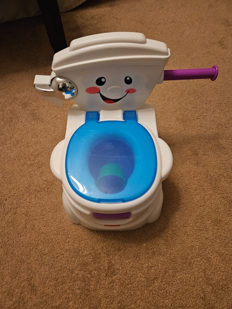 Gently used toddler potty training seat. Features lights, sounds, and phrases. Includes removable bowl. Great for potty training.