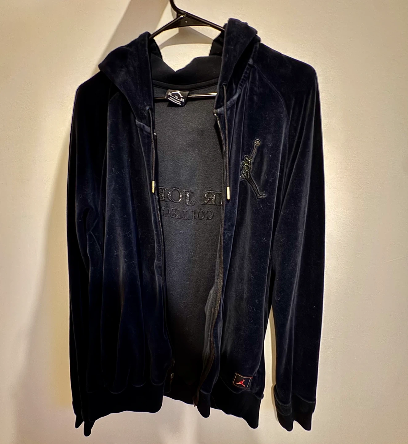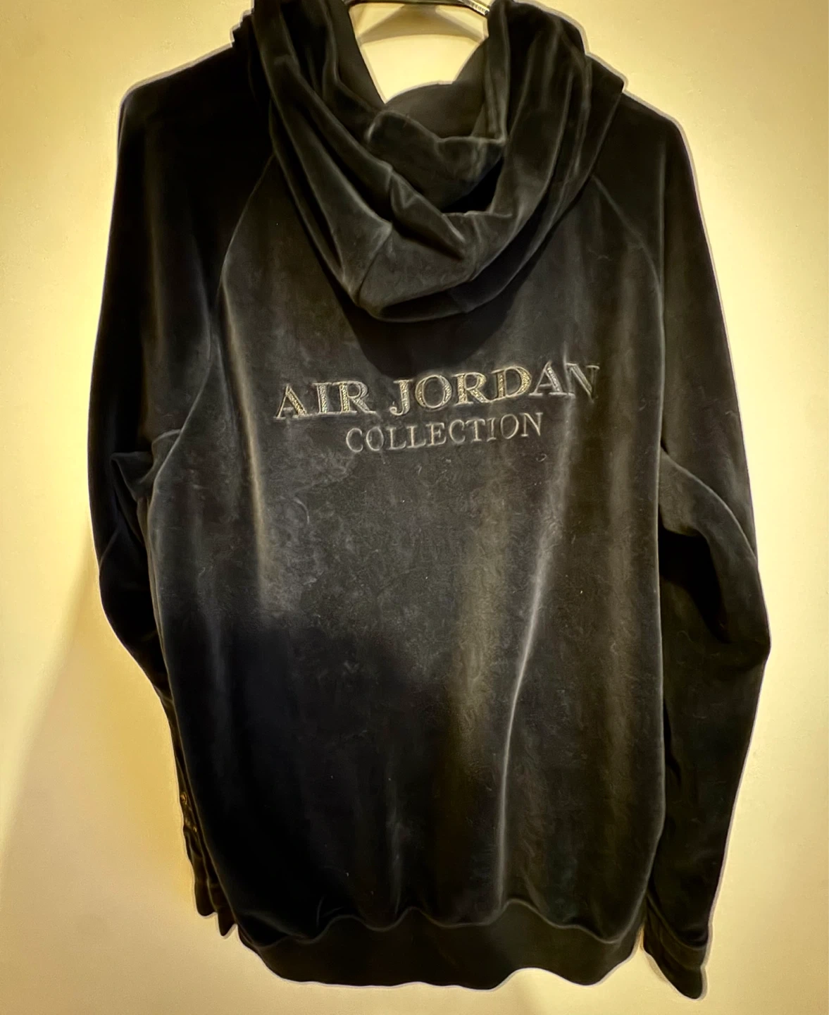A uthentic Nike Air Jordan x OVO (October’s Very Own) black velour track jacket, size XL.