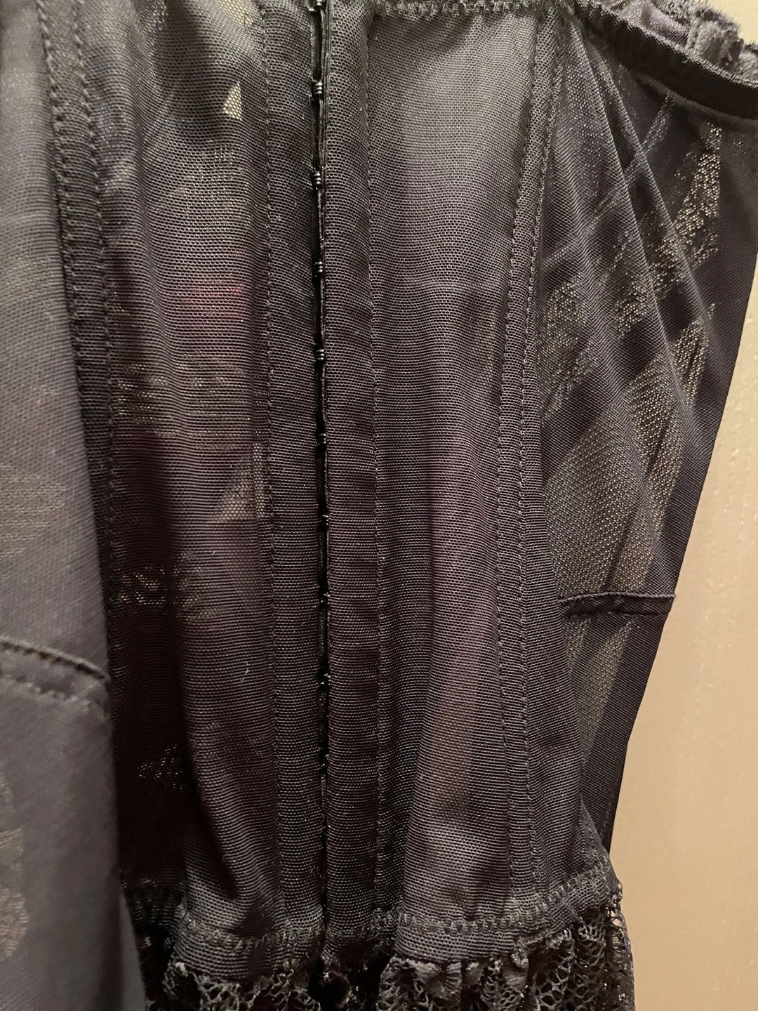 La Senza Black Lace Corset with Pink Ribbon Detail - Size Small