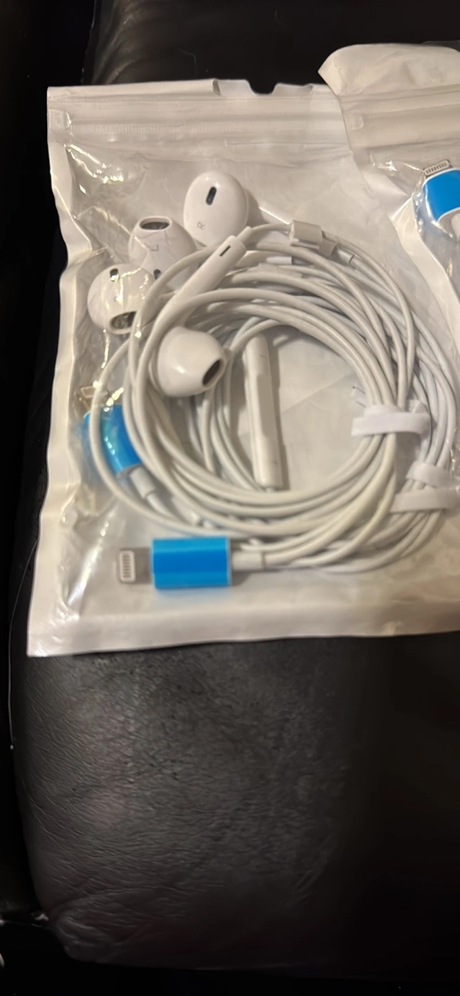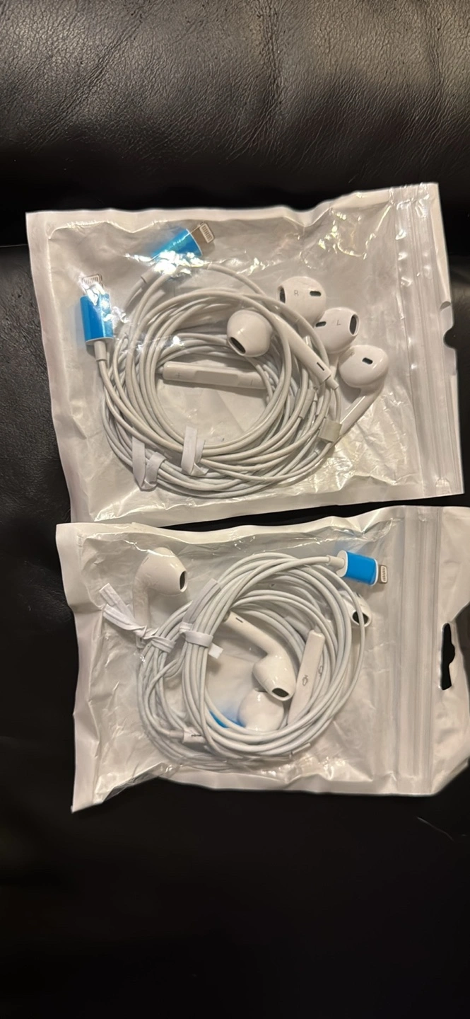 4 pairs of wired Earpods. New, unused. Lightning connector. Great for listening to music or making calls. Packaged individually. $10 each packet or four for 20