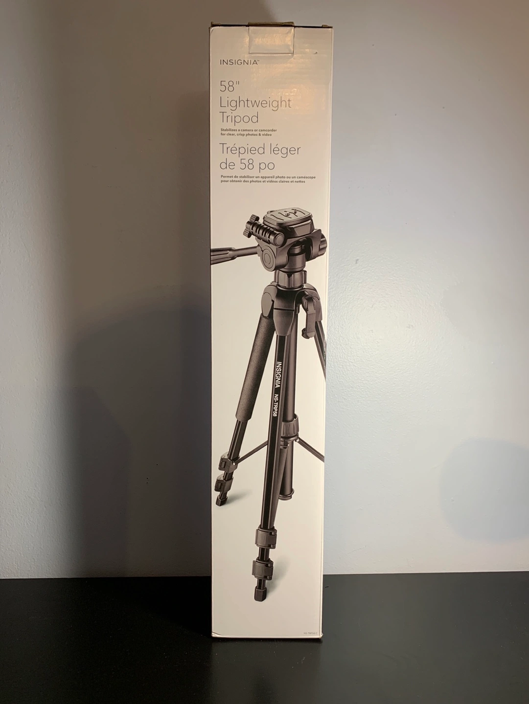 New Insignia 58-inch lightweight tripod. Perfect for cameras, phones, and videos.