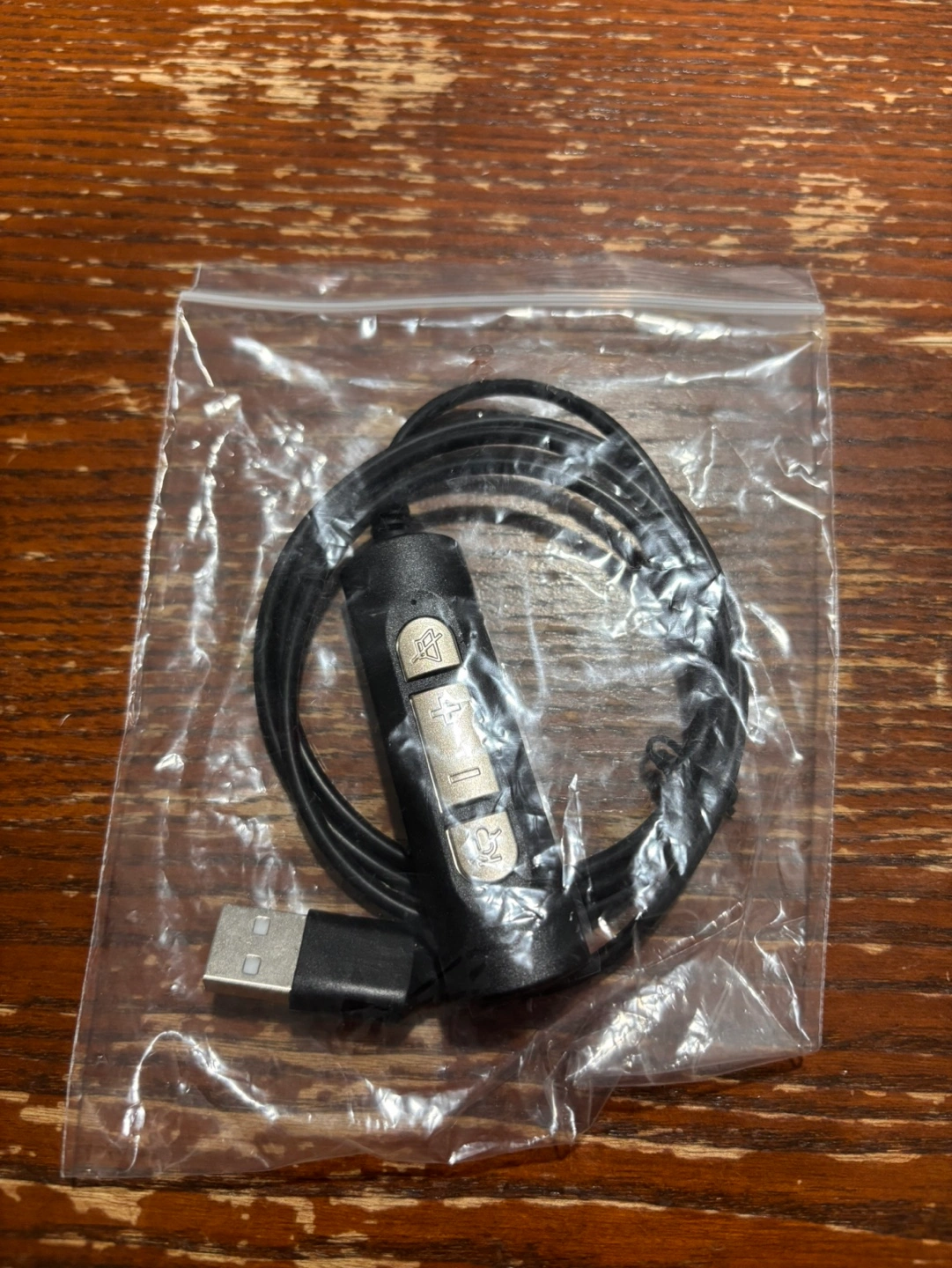 Wired remote control, compatible with various headphones. Features volume and playback controls. USB connection. New in bag