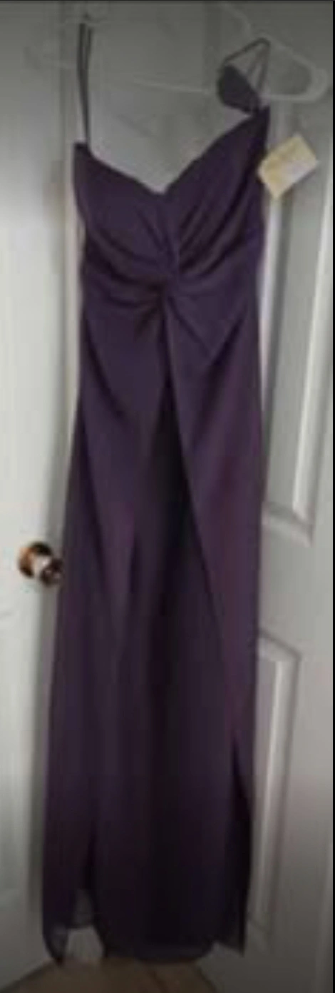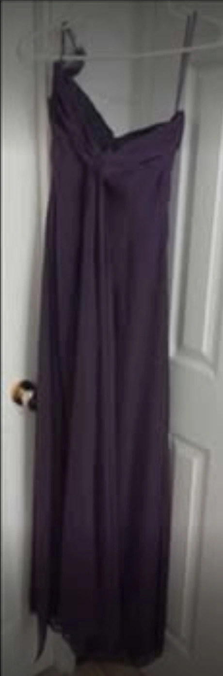 Gorgeous dark purple floor-length bridesmaid dress. One-shoulder design, flattering fit. High-quality fabric. Excellent condition, never worn. Size 12. tag attached. Pick-up Downtown Windsor. please check out my other listing.