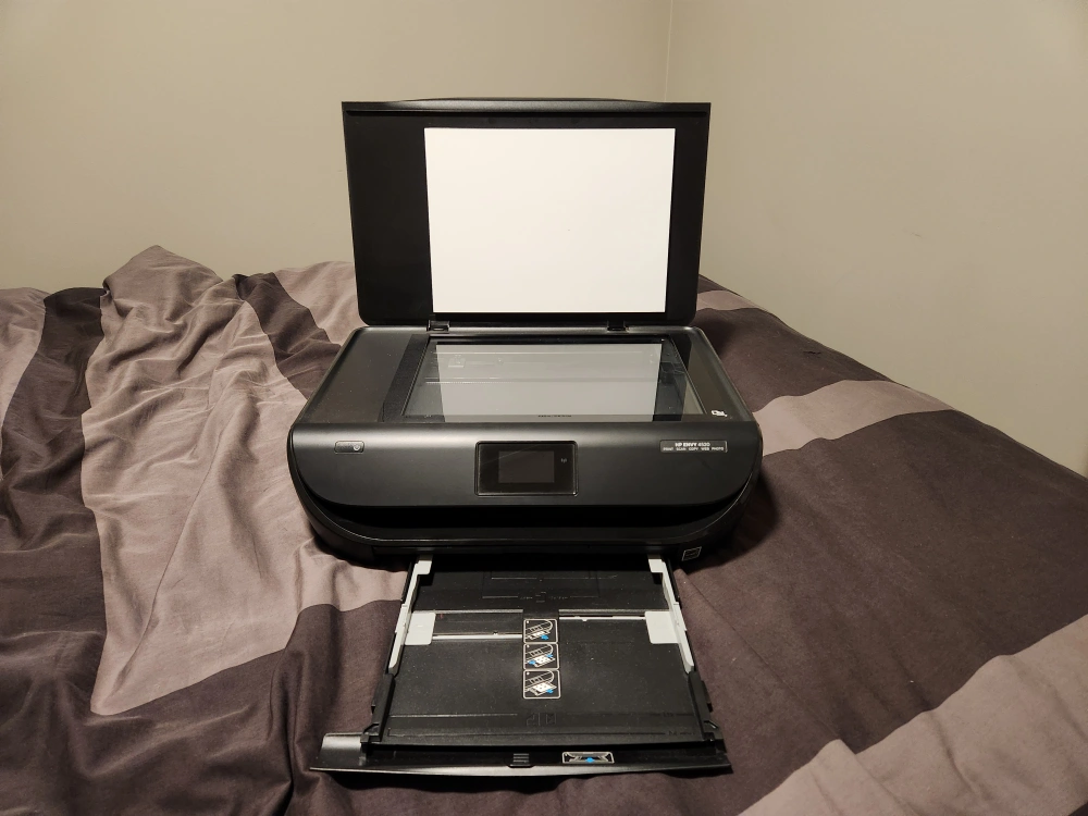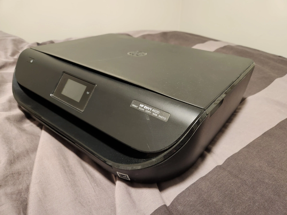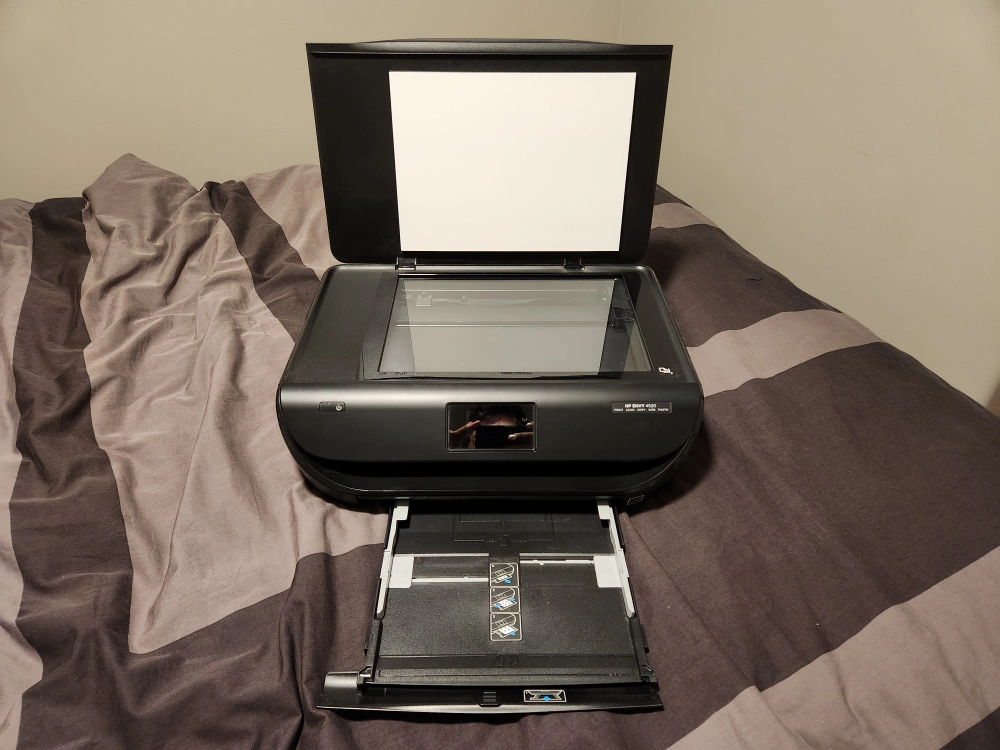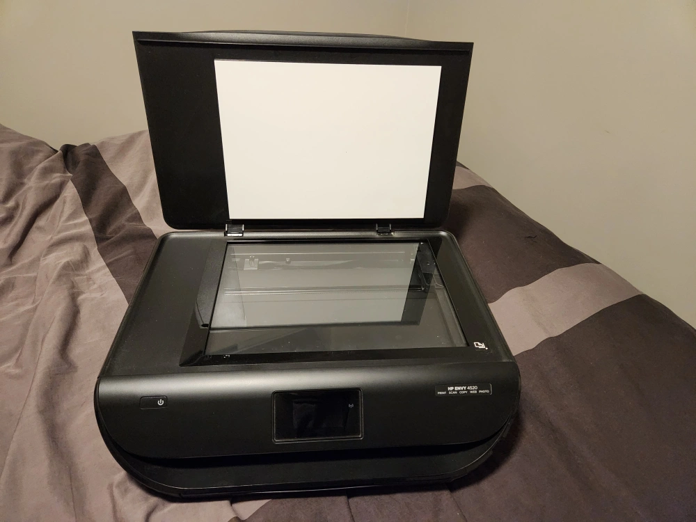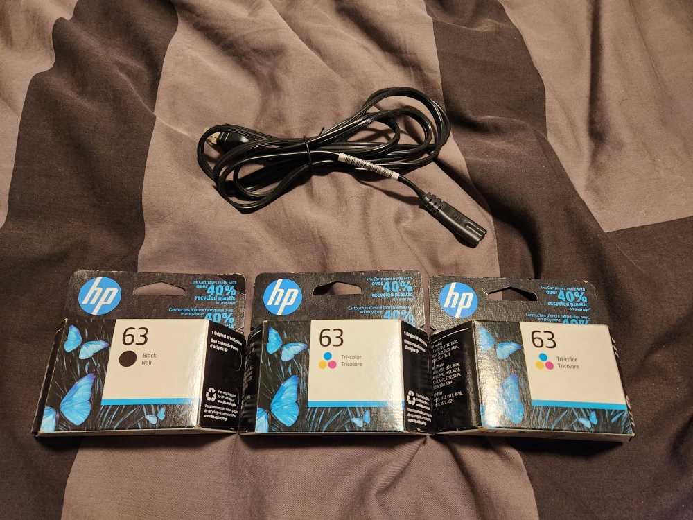 All-in-one printer. Prints, scans, copies, and handles web photo printing. Black. Used. Comes with 3 new cartridges and power cord.