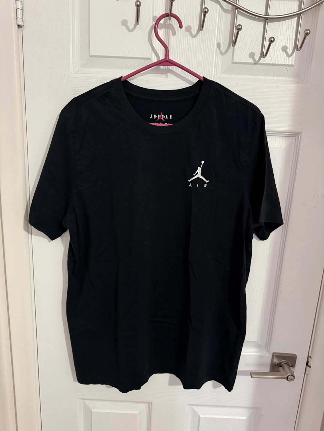 360Men's black Jordan Brand t-shirt. Size XL. Minimalist design. Made in Vietnam. 100% cotton. Jordan Jumpman Air Embroidered Men Black Shirt Condition: in excellent to new condition (no issue) Price: 35 cad cash or best offer Location: 807 Brimley Road Scarborough (pick up location) Meet up: Line 1 or Line 2 subway or downtown Please see my other listing. Happy Shopping.