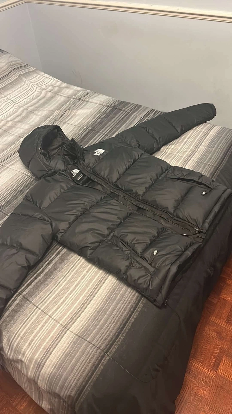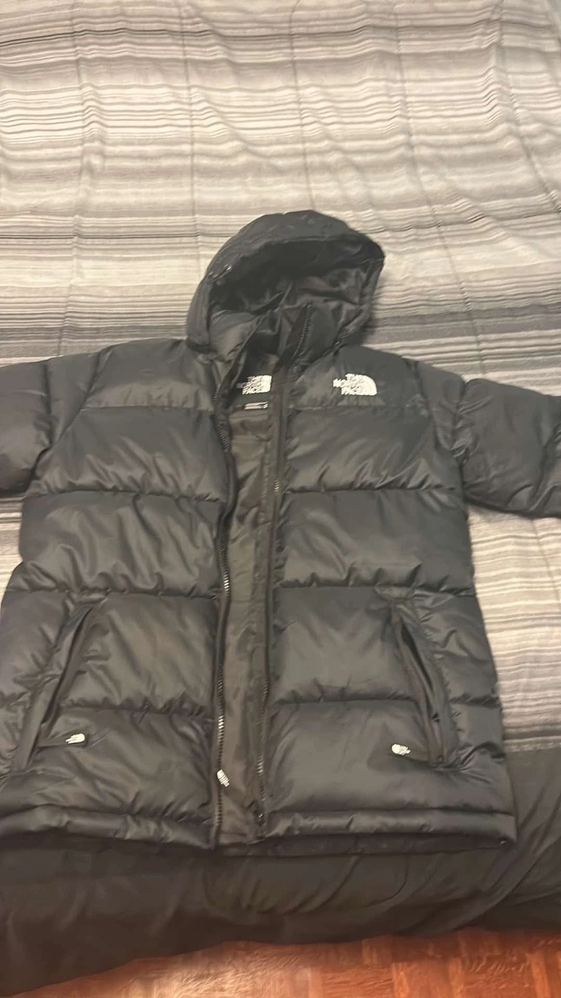 126Men's black puffer jacket. Long sleeves, hood. Zipper closure. Two front pockets. Excellent condition.