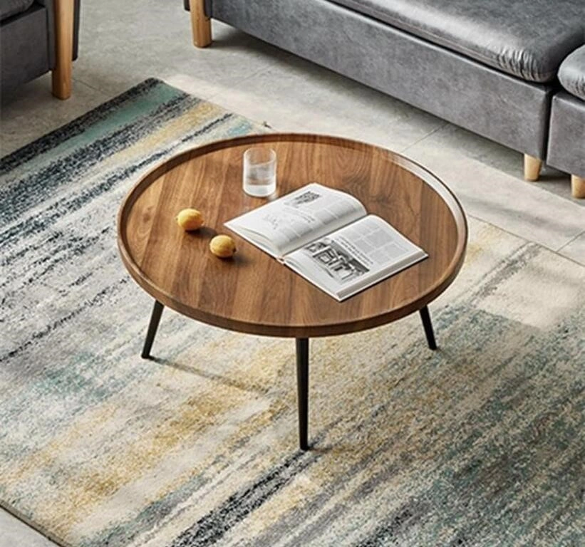 Round Wooden Coffee Table with Black Legs