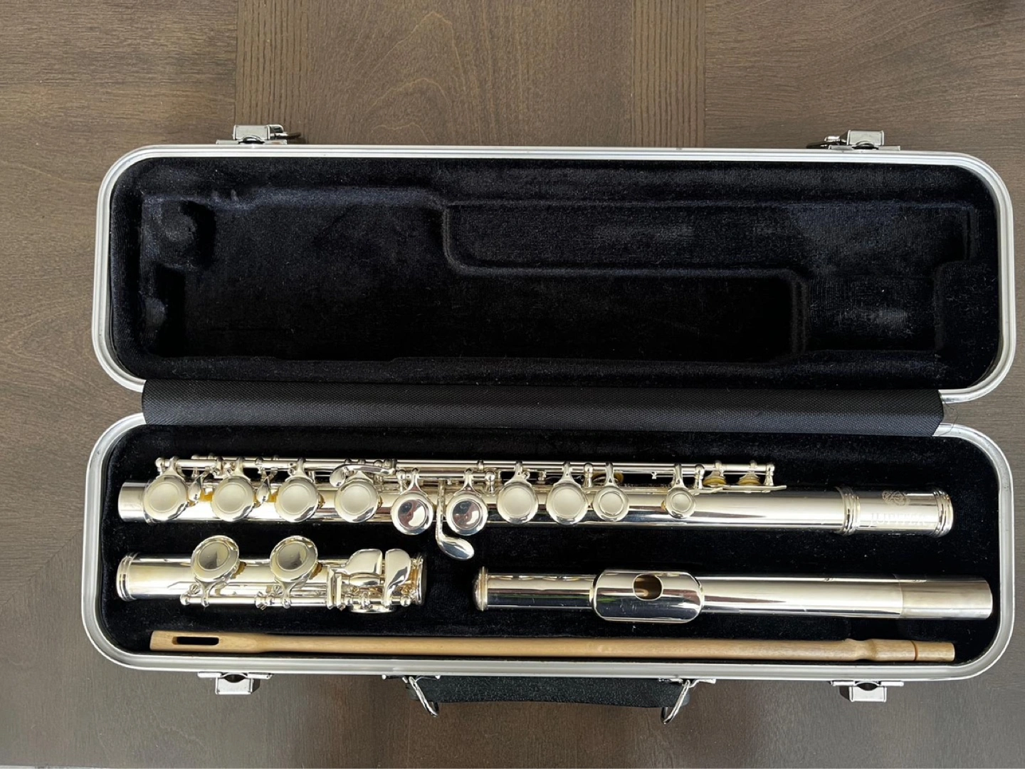 Silver-plated flute. Includes hard case, cleaning rod, and free stand in a bag. Excellent condition. Great for beginners.