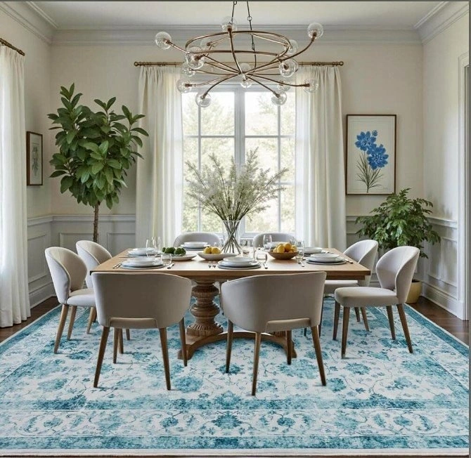 Beautiful Area Rug 8x10 Washable Non-Slip, Foldable (Blue)