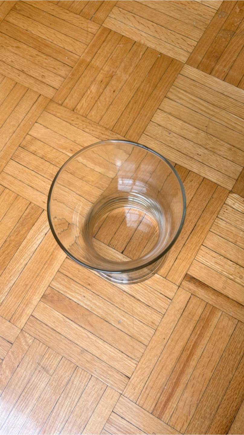 A clear glass vase with a curved shape. It's made of glass and has a smooth finish. This vase is suitable for displaying flowers.
