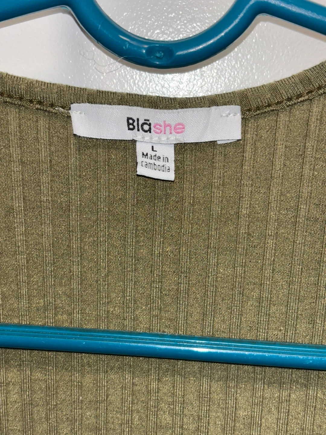 Buy & SellBlashe Ribbed Long Sleeve Cardigan - Olive Green, Size LBlashe Ribbed Long Sleeve Cardigan - Olive Green, Size L$20This is a Blashe long-sleeved cardigan in an olive green ribbed knit. It's a size large. Made in Cambodia. Brand new.ConditionNewSizeLargeBrandBlasheWHERE TO MEETCheck LocationView MapSELLERverifiedJasminHarlem892 reviews0 chats·0 favorites·5 viewsSEND CHAT TO SELLERHi Jasmin! I’m interested in your listing.Hi Jasmin! I’m interested in your listing.Get the Karrot app to chatSign In to chat