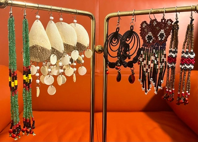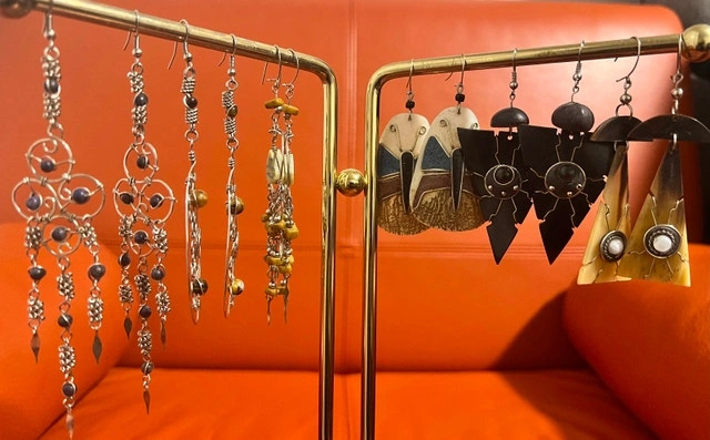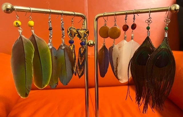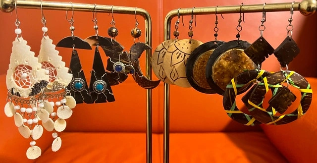 I have an assortment of unique handmade jewelry for sale in bundles. First are the bracelets, $45 for them all. Second are the necklaces, featuring different styles of stone pendant necklaces, $60 for them all. Last are earrings; I have 4 bundles available, priced at $25 each.