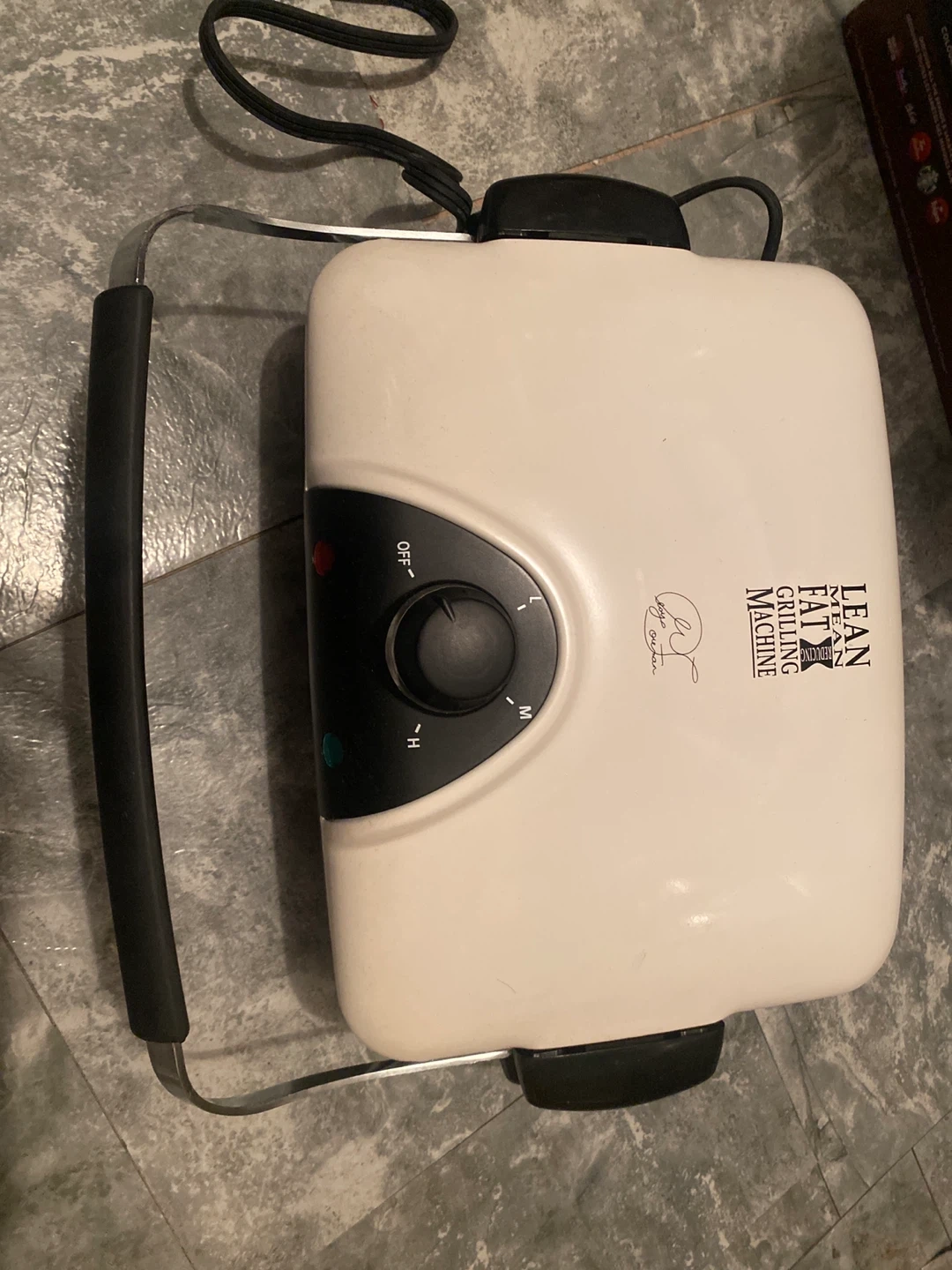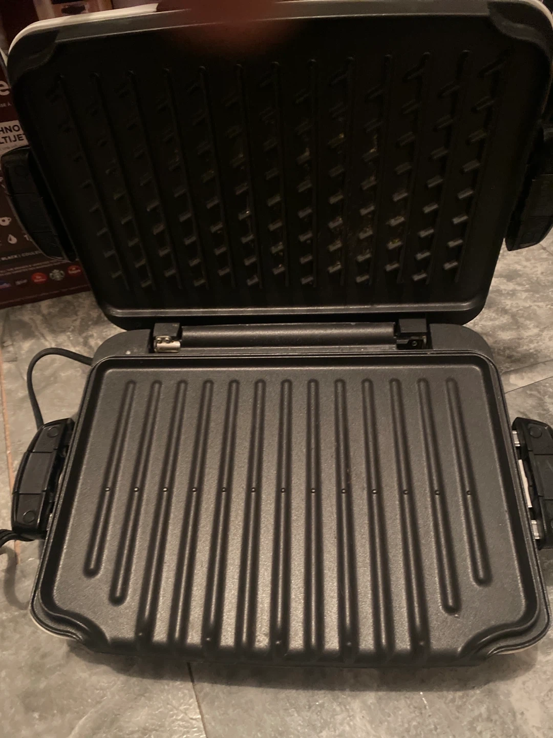 George Foreman electric grill for healthy cooking. Non-stick grill plates for easy cleanup. Adjustable temperature control.and it comes with all the parts