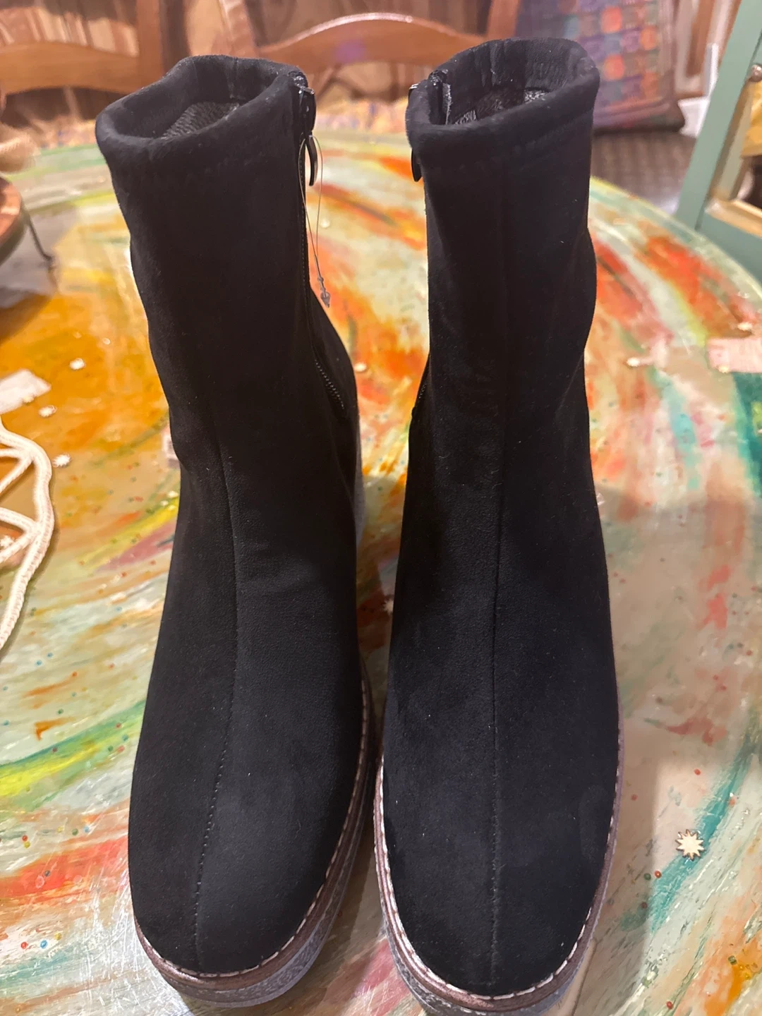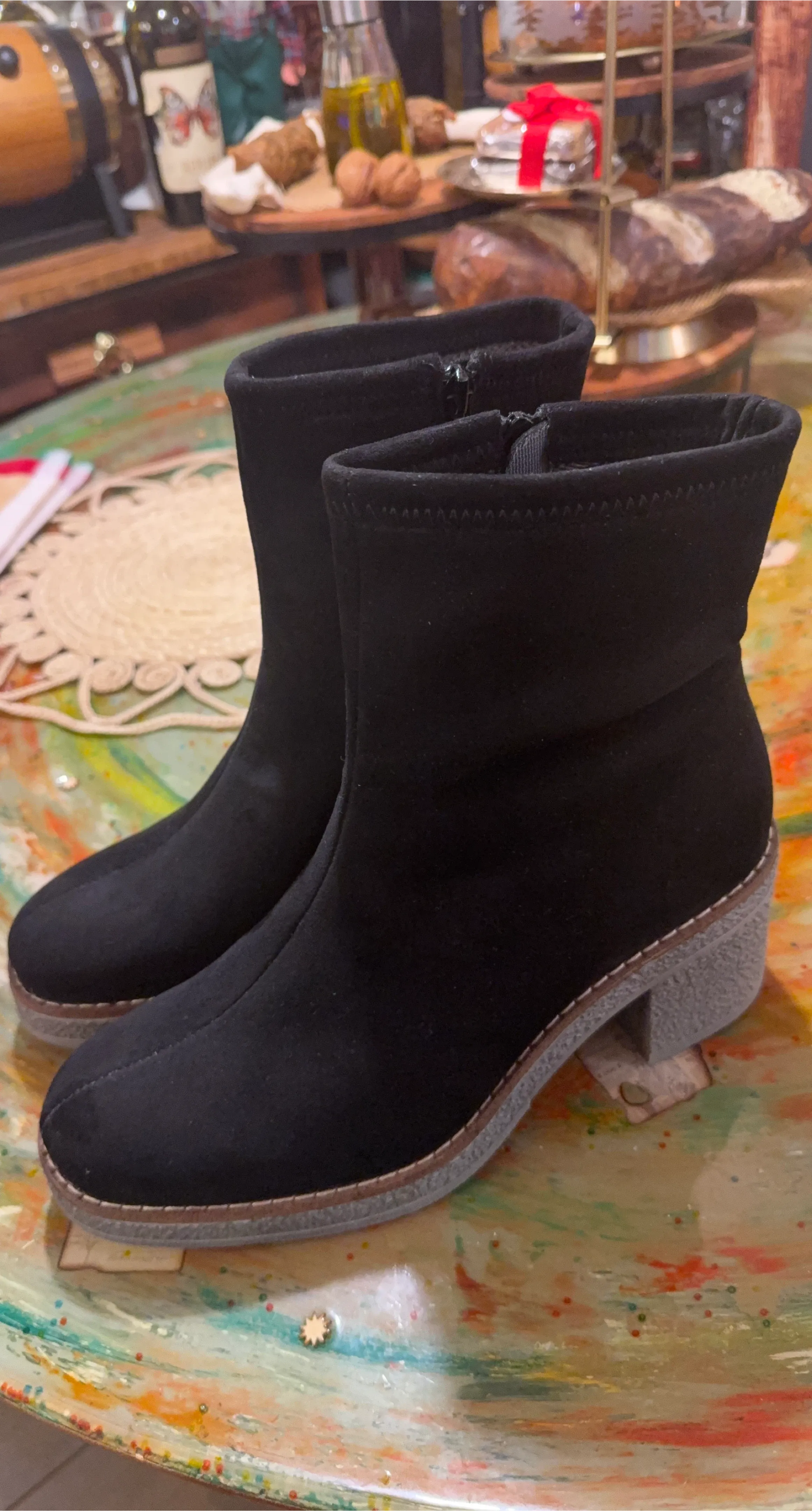 These stylish black ankle boots are in great condition and ready for a new home! They feature a comfortable block heel and a sleek design that goes with everything. Perfect for adding a touch of chic to any outfit!