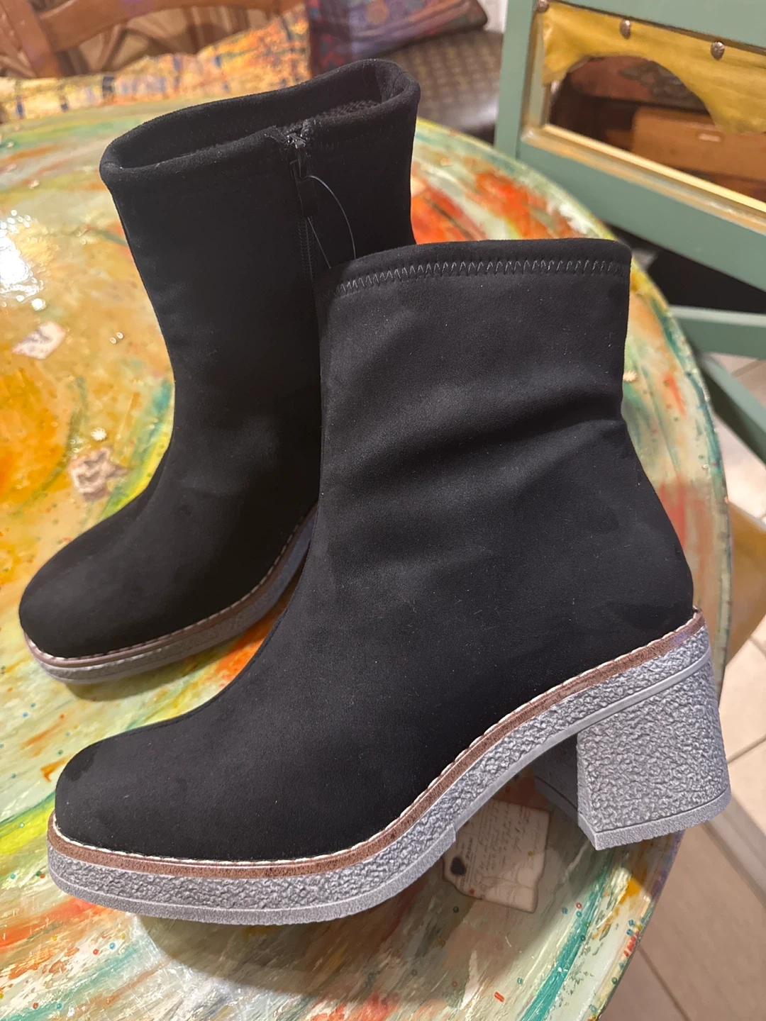 These stylish black ankle boots are in great condition and ready for a new home! They feature a comfortable block heel and a sleek design that goes with everything. Perfect for adding a touch of chic to any outfit!