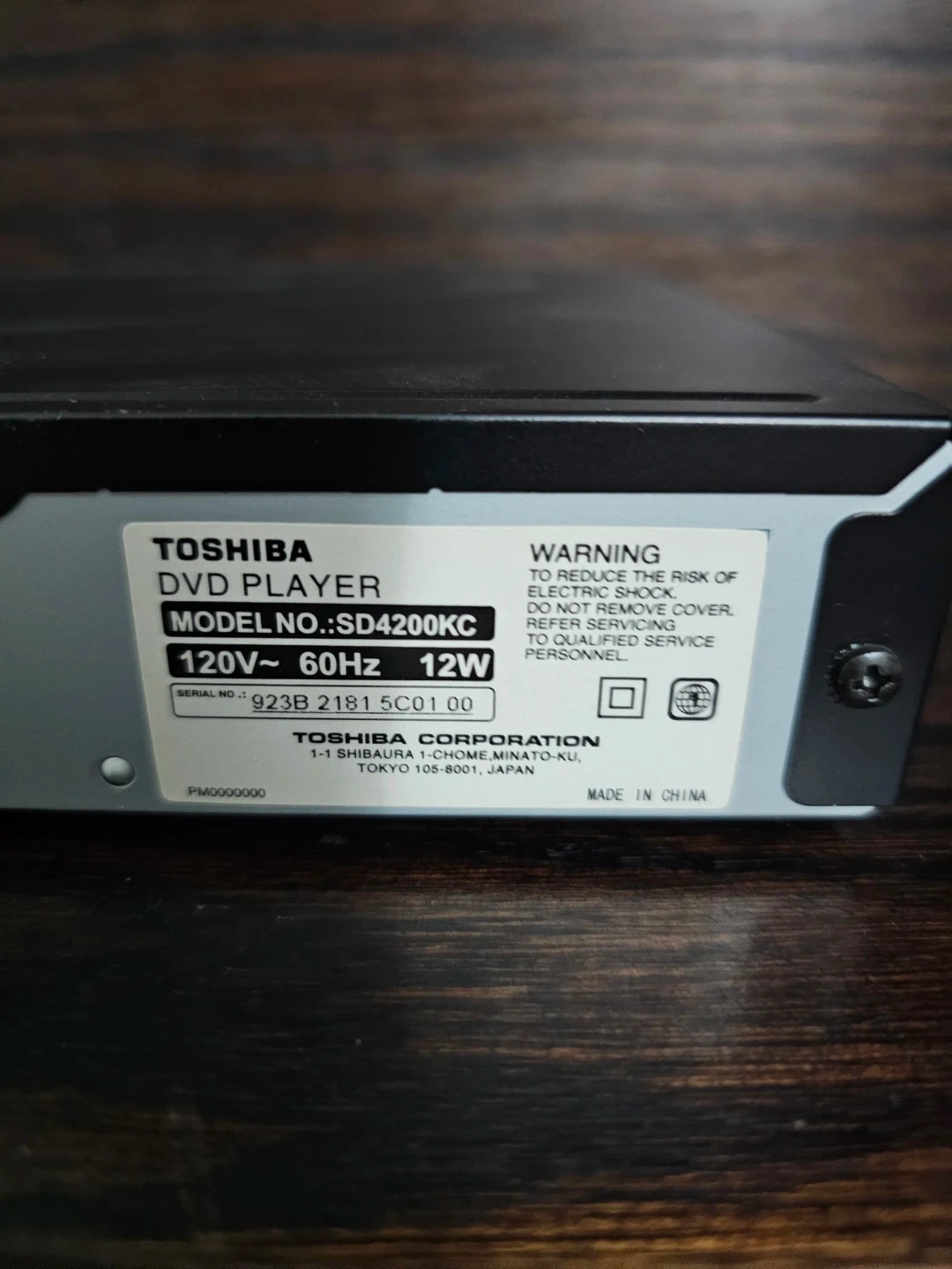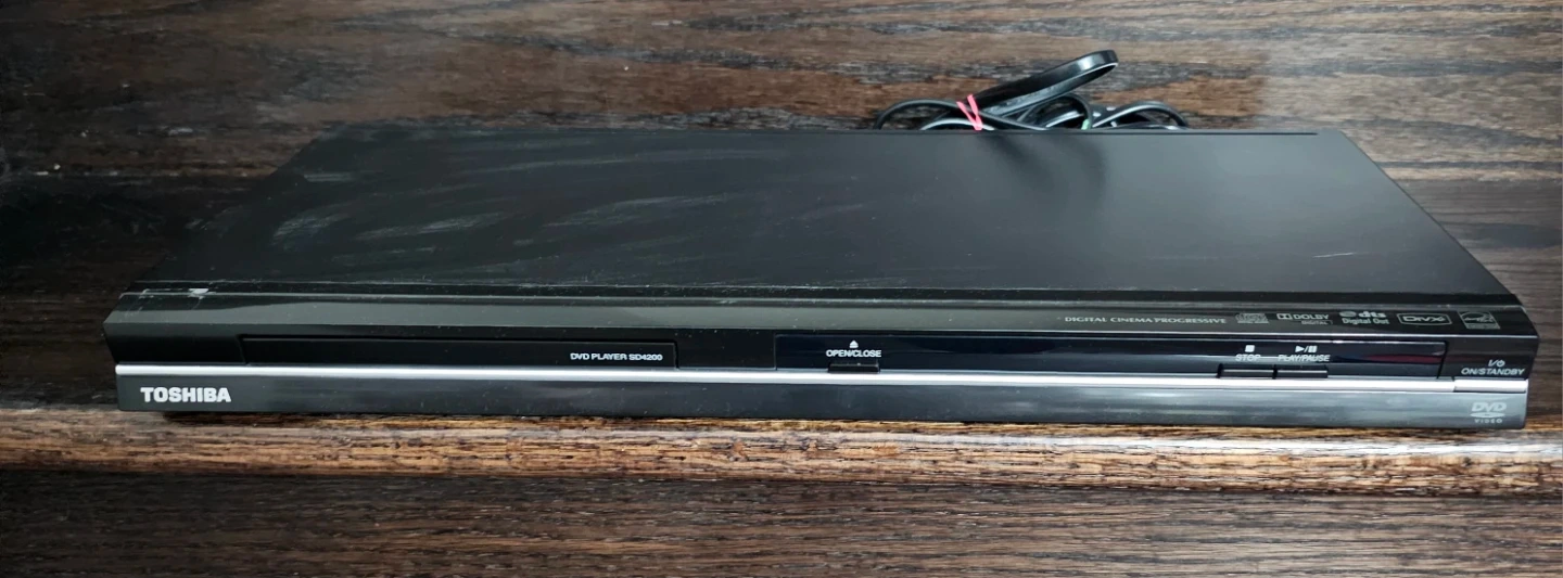 This is a Toshiba SD4200 DVD Player. It supports Dolby Digital and DTS output. This unit is black and it's 120V.