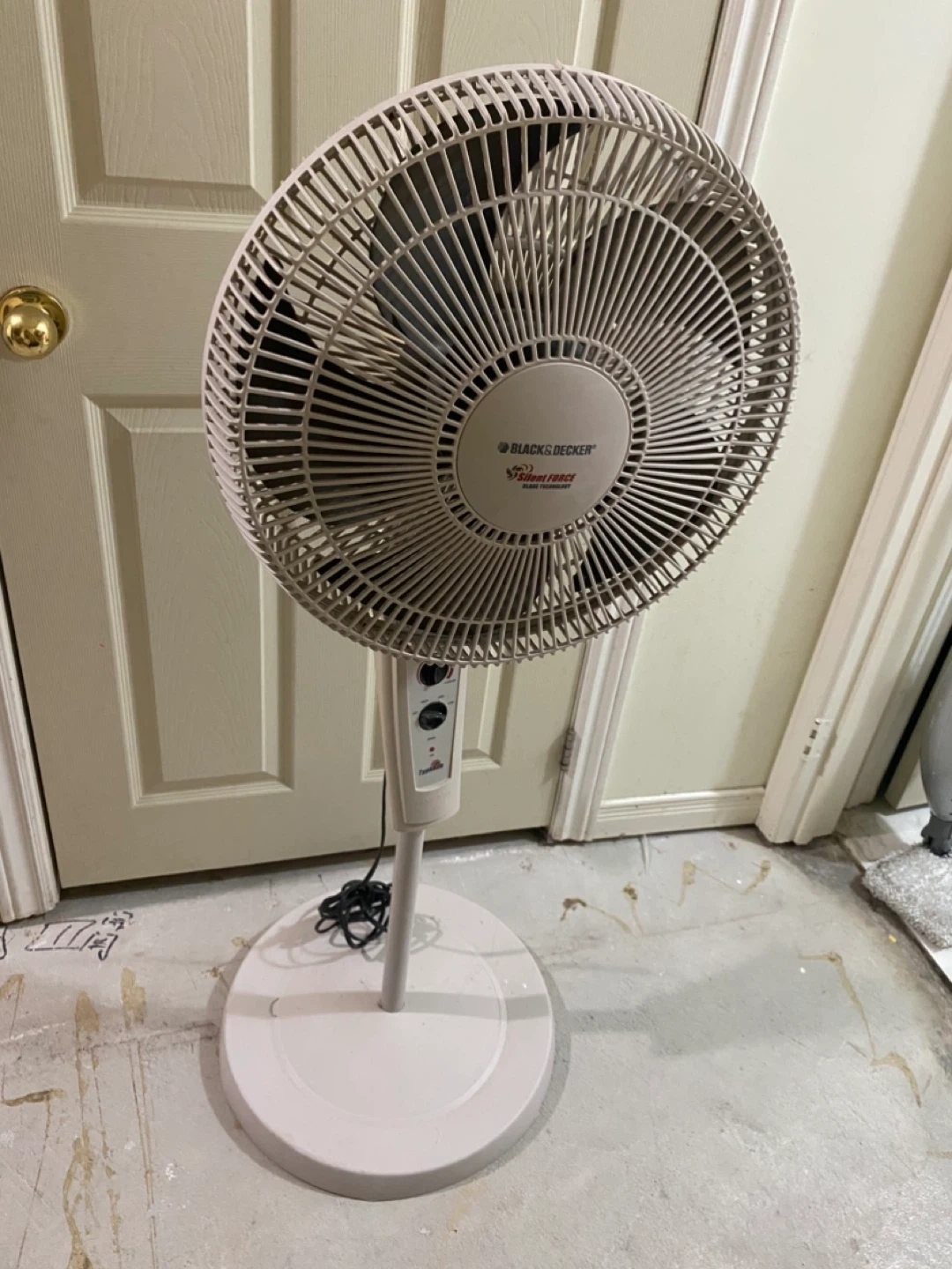 This is a BLACK+DECKER Silent Force pedestal fan. It has multiple speed settings. It's a great fan for a bedroom or living room.