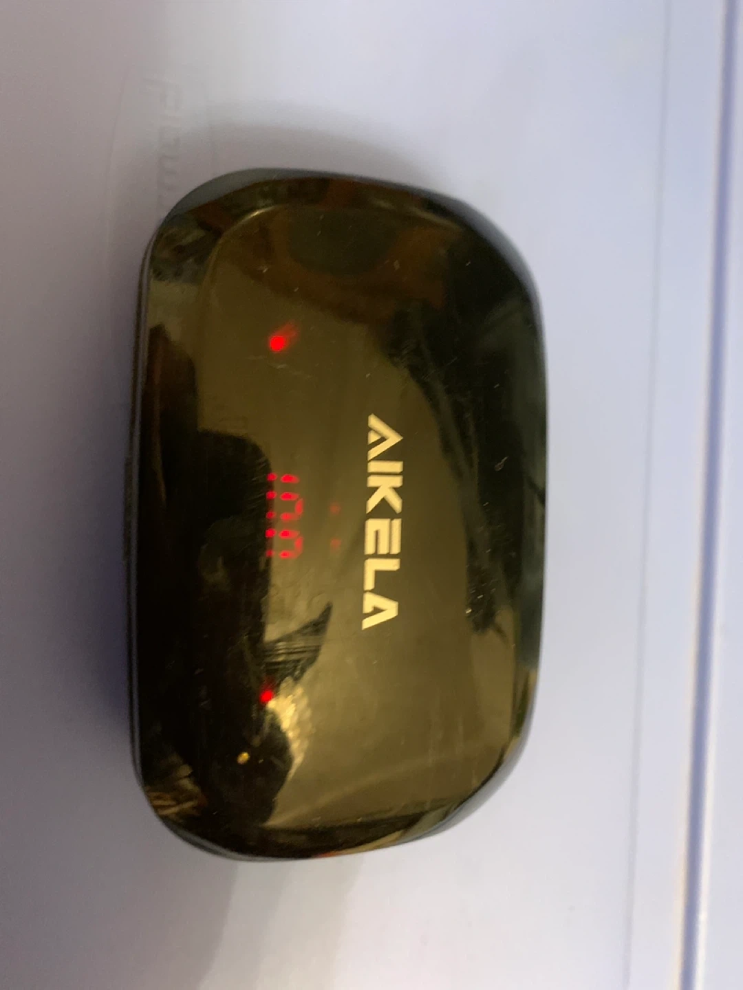 AIKELA wireless earbuds come with a charging case. The case displays the battery level. Red indicator lights show on the earbuds.