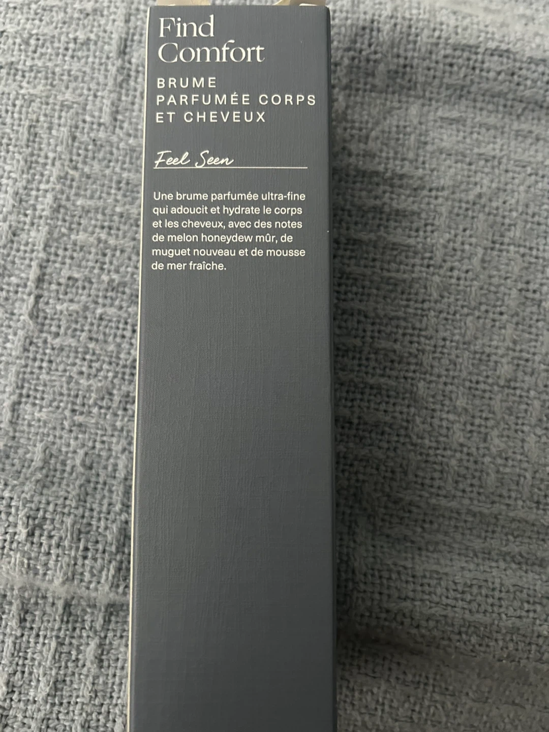 Rare Beauty Find Comfort Body & Hair Fragrance Mist in the 'Feel Seen' scent. This super fine fragrance mist softens and hydrates your body and hair. It comes in a 100mL bottle. Shake well before use!