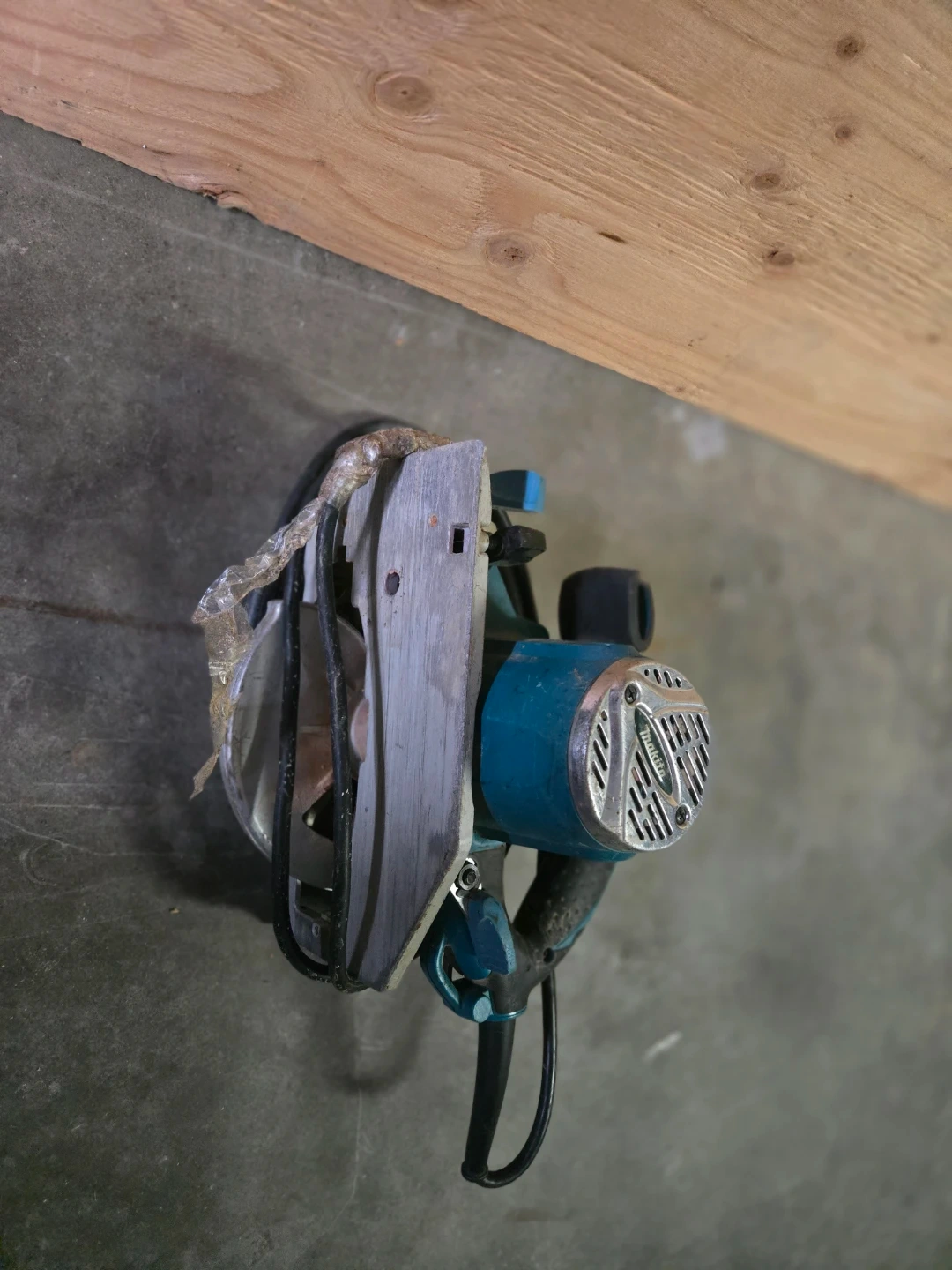 Used Makita circular saw with a powerful motor for cutting wood. This corded saw is ready for your next project. It features a durable metal guard and a comfortable grip handle.