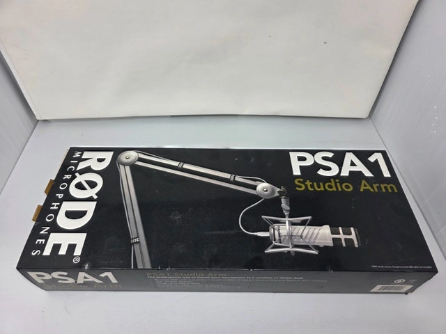 Pre-owned RODE PSA1 microphone boom arm. Comes with original box, base mount, and 3 velcro straps.