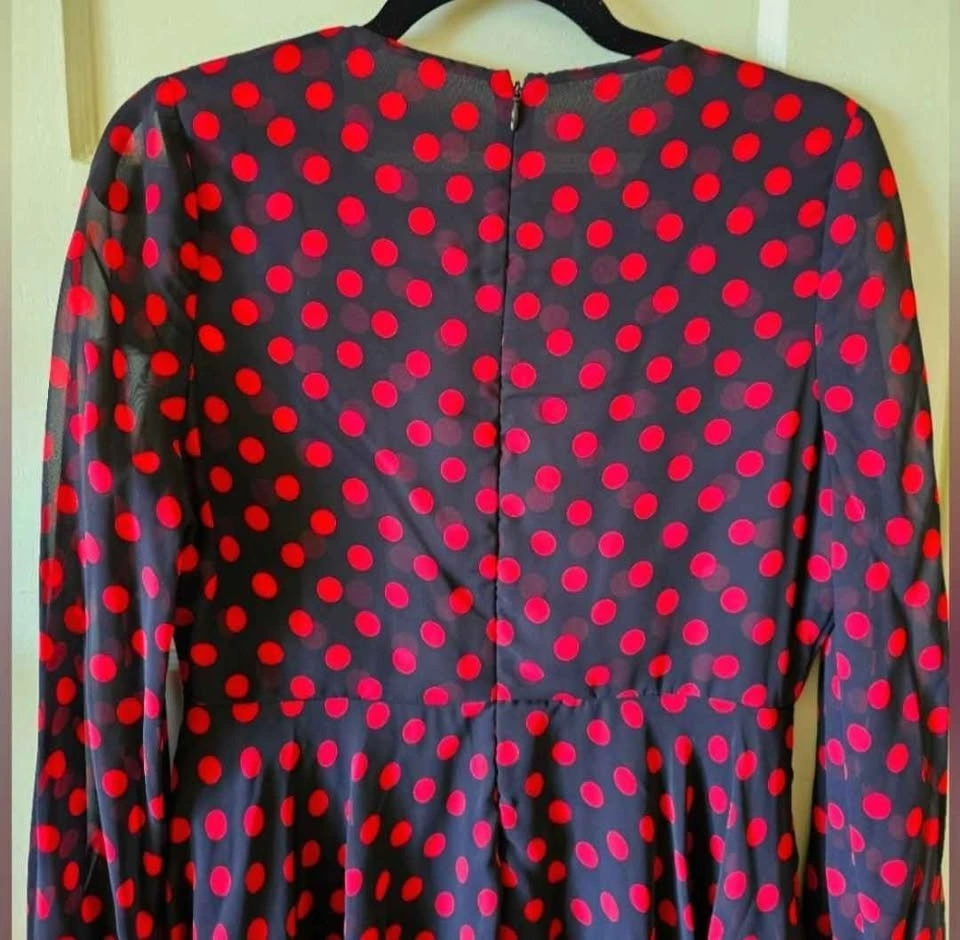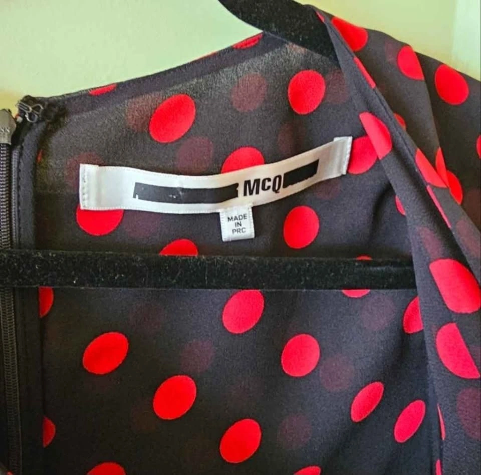McQ Alexander McQueen Black Red Polka Dot Chiffon Mini Dress