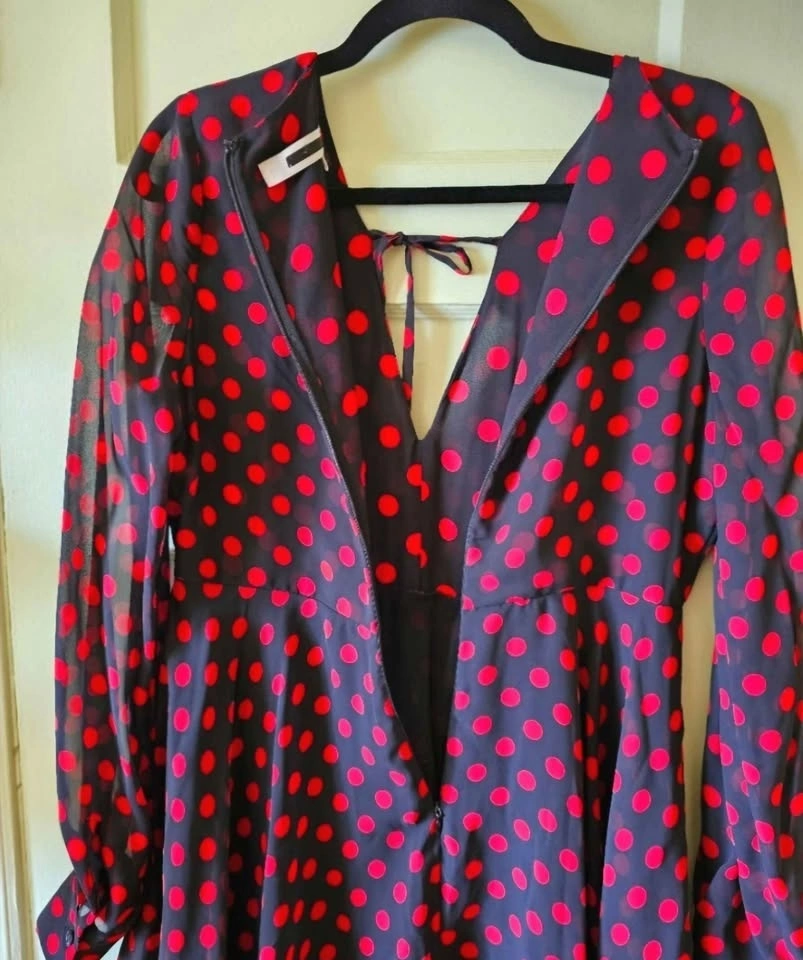 McQ Alexander McQueen Black Red Polka Dot Chiffon Mini Dress