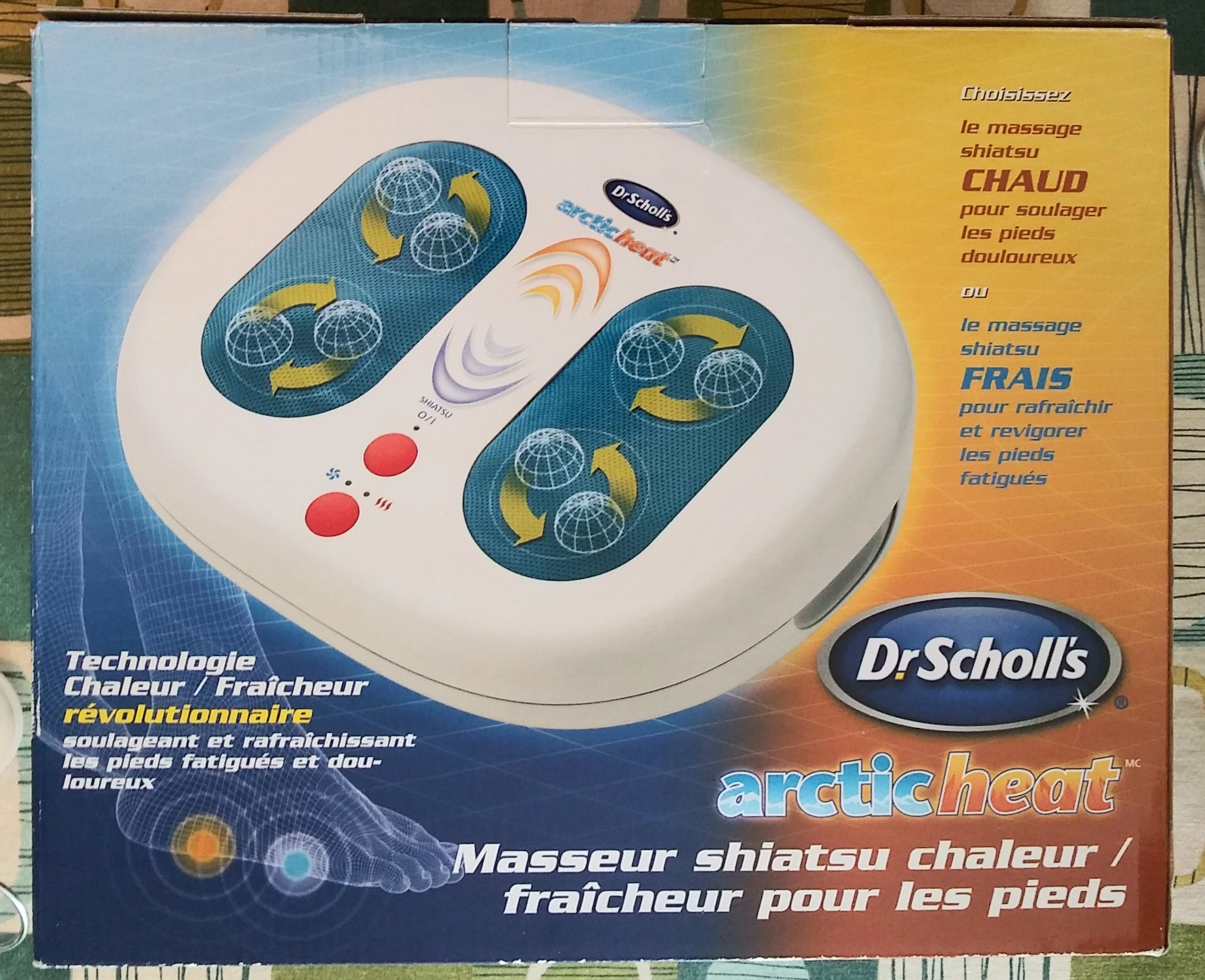 Get ready to soothe those tired, achy feet with the Dr. Scholl's Arctic Heat Hot & Cold Shiatsu Foot Massager! This massager features revolutionary warming and cooling technology to refresh and re-energize your feet. It's designed for deep muscle relief with easy foot-operated controls. Comes in the original box!