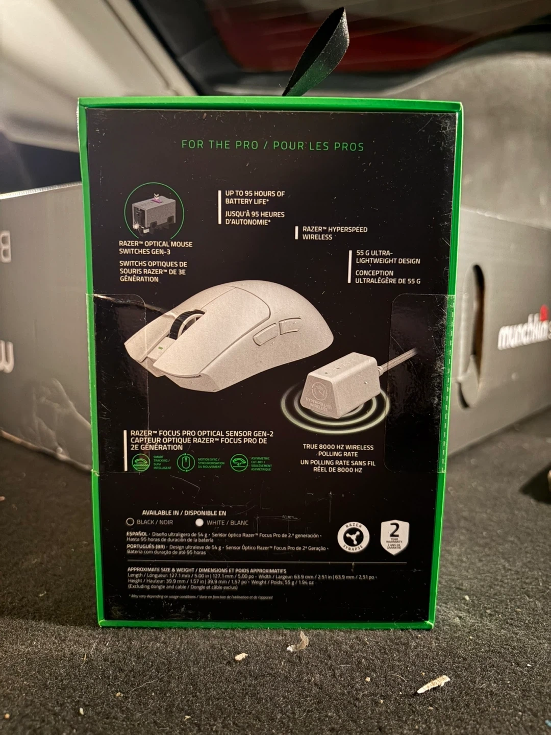 Selling a Razer Viper V3 Pro wireless gaming mouse in white. It’s brand new still sealed in the box and has never been opened used or taken out of the box. Ultra-lightweight design with focus pro optical sensor gen 2. Up to 95 hours of battery life. Includes USB Type A to Type C cable and grip tape.