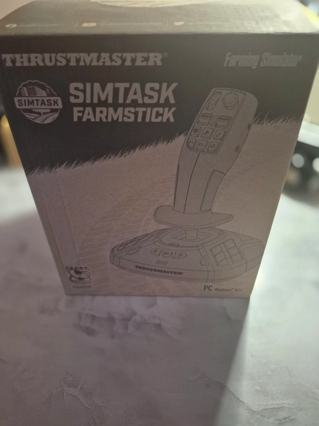 This is the Thrustmaster SimTask Farmstick, designed for Farming Simulator. It features 3 axes and 18 action buttons, plus a twist handle for additional control. The base includes 3 axes and 18 buttons, along with a twist grip for more ways to configure your in-game actions. It's great for enhancing your farming simulation experience!