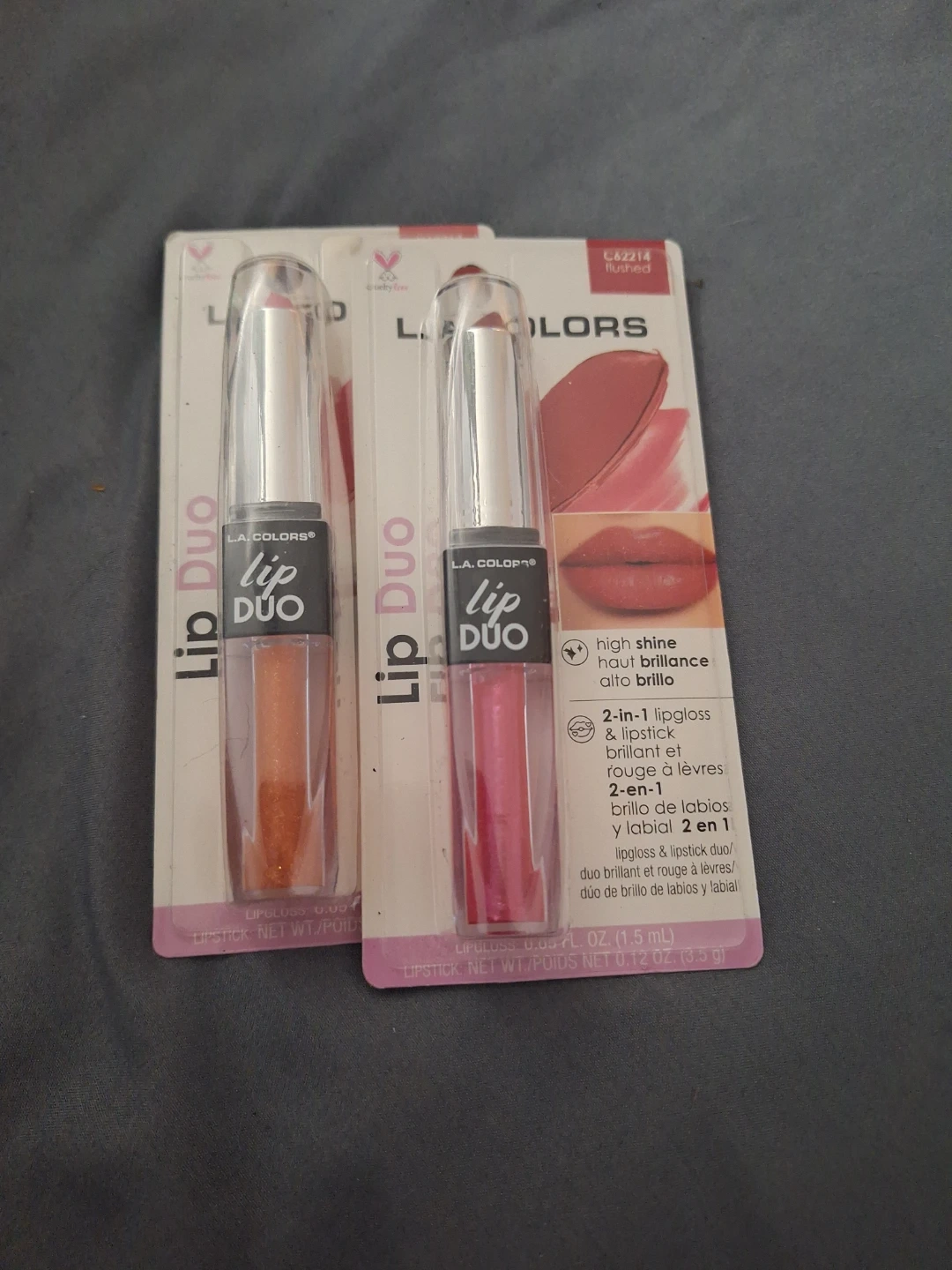 This L.A. Colors Lip Duo offers a 2-in-1 design featuring lipgloss and lipstick in one convenient package. It provides high shine for a vibrant look. Perfect for quick touch-ups on the go!