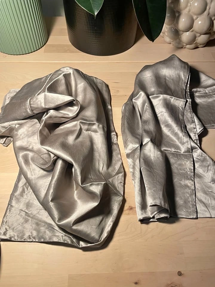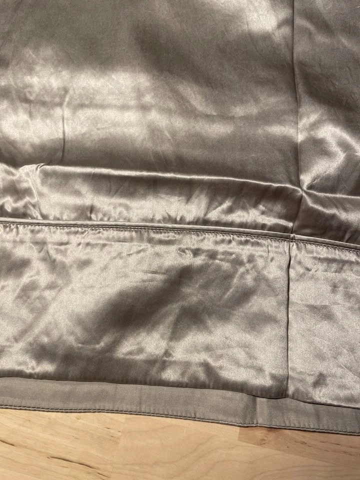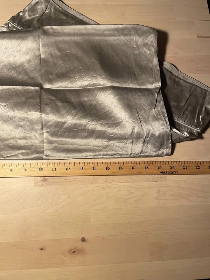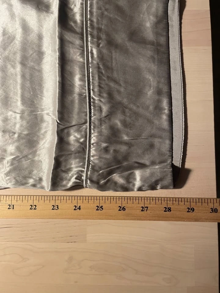 The color is incredible - a mix of champagne, gold, silver, and pearl. I washed them once after purchase on a warm gentle cycle, without using a dryer. As you can see, they look great, crisp, and shiny like new. Amazing quality silk. I didn't get to use them, so they are basically new, just without tags. Size is 20x25 inches, queen size. One pillowcase is $35, and two pillowcases are $60. My main intersection is Yonge and Eglinton in Toronto. If your total purchase is $70 or more, I'm happy to meet somewhere more convenient for you.