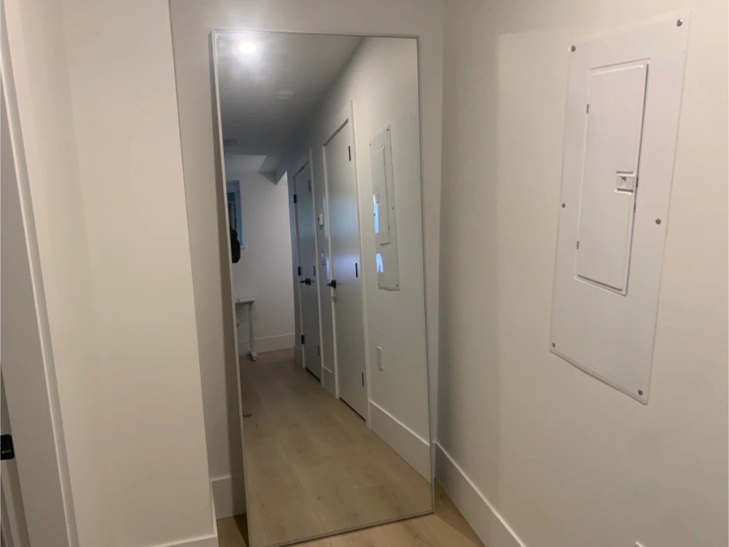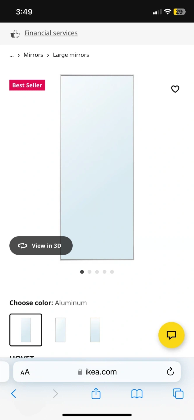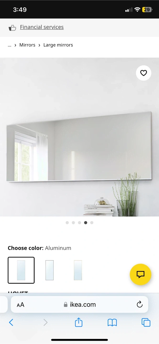 This is a very large/tall, IKEA HOVET full-length mirror with a simple silver frame. It's perfect for checking your outfit. It would be useful in a bedroom, hallway, or entryway.